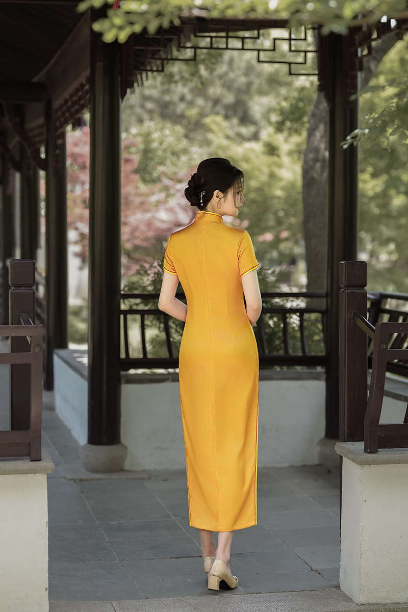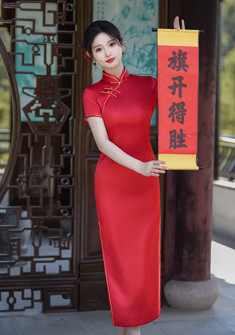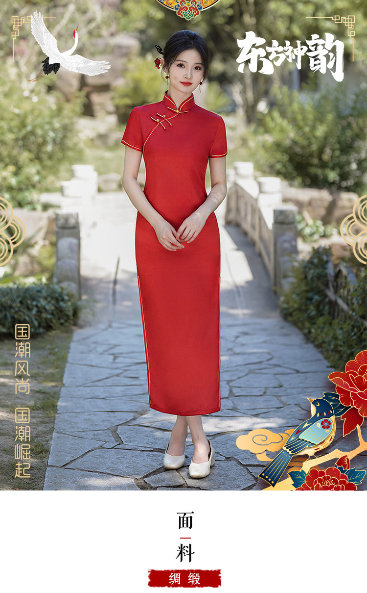 2025中国風夏秋新型改良植毛チャイナドレス新中国式ロングタイプ披露宴礼母公演代卸売り