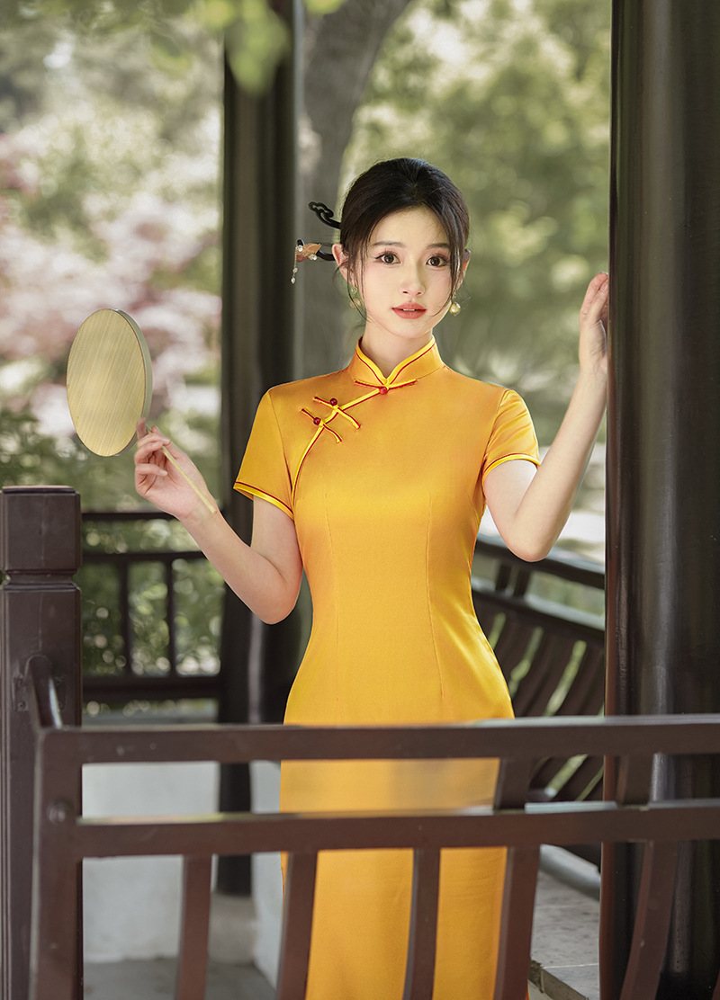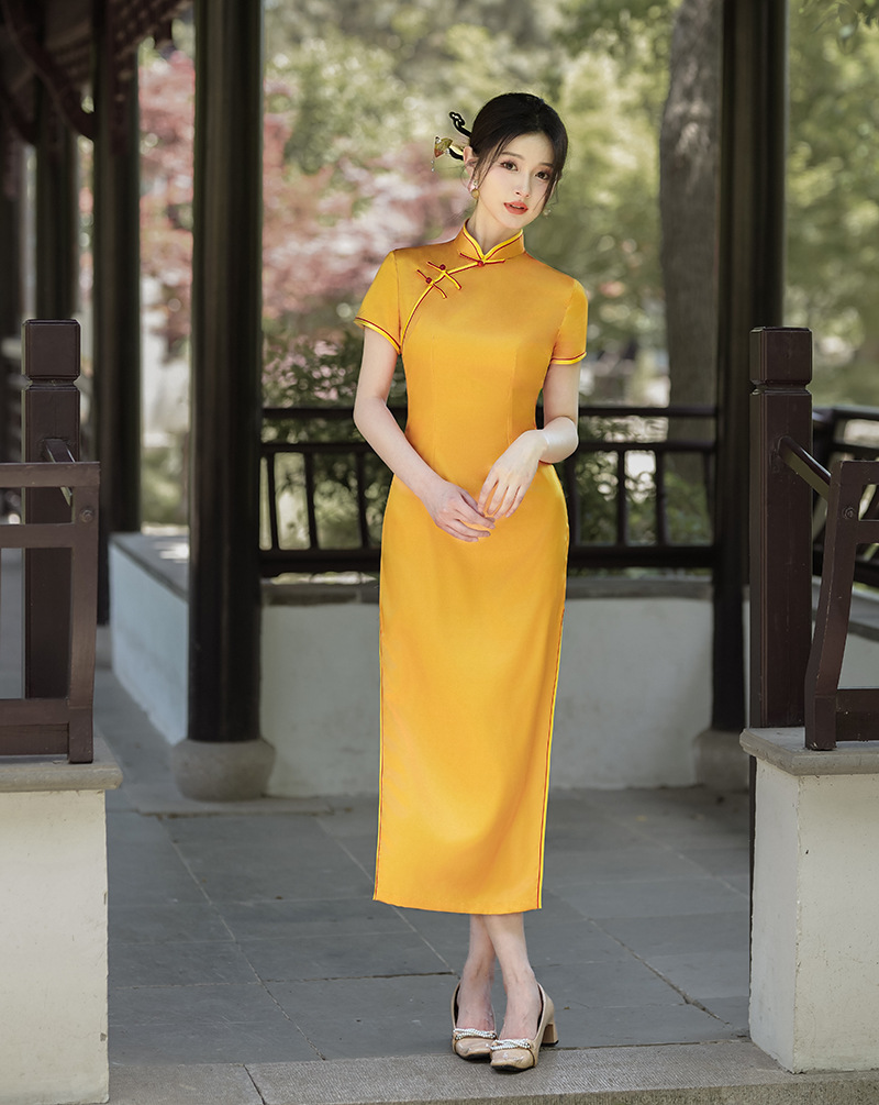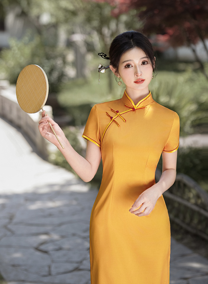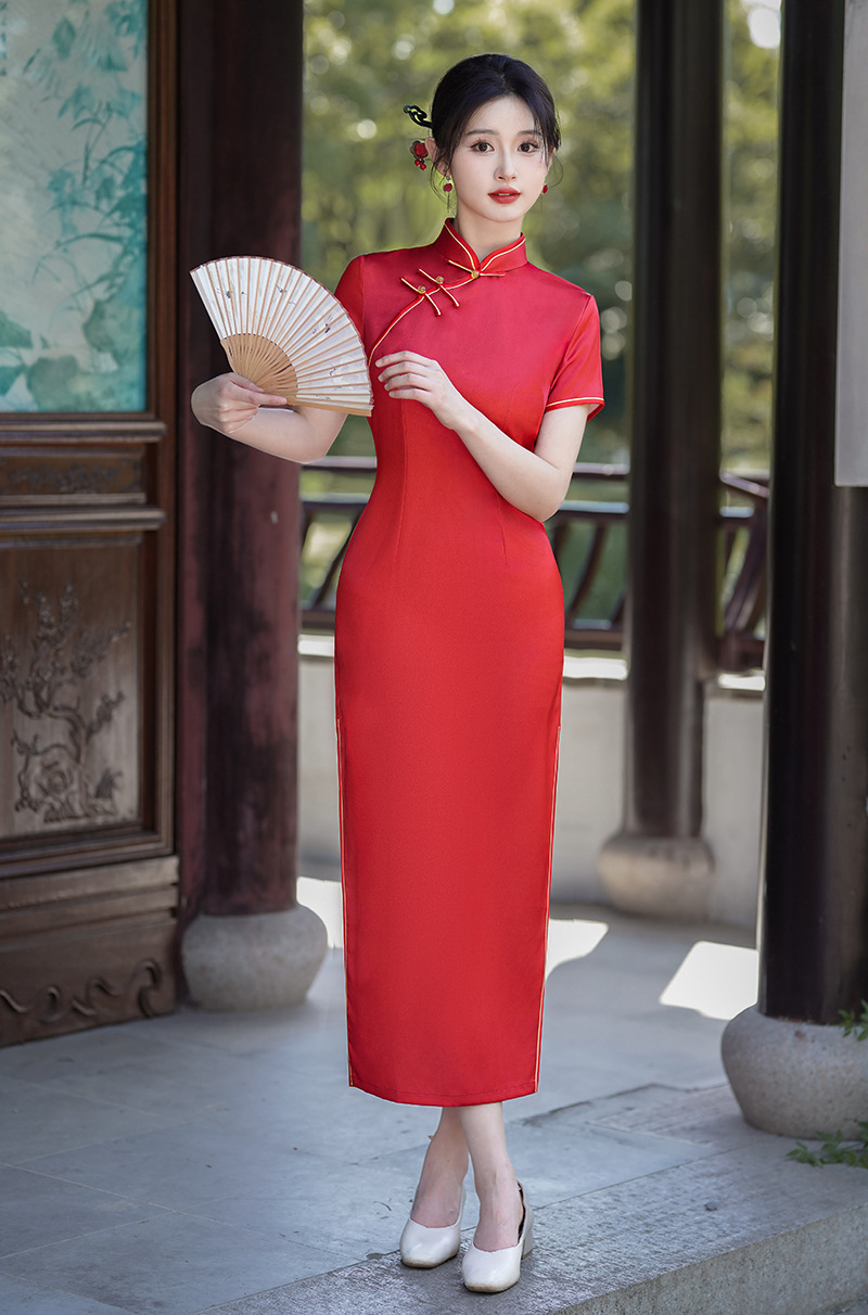 2025 中国風の春夏の新スタイル中国のチャイナドレスロングスカート気質サテンドレス安い宴会ドレス卸売
