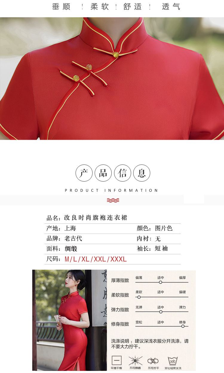 2025春夏国民風新作チャイナドレスミドル丈レディースサテン大きいサイズドレスレトロスリムファッション卸売
