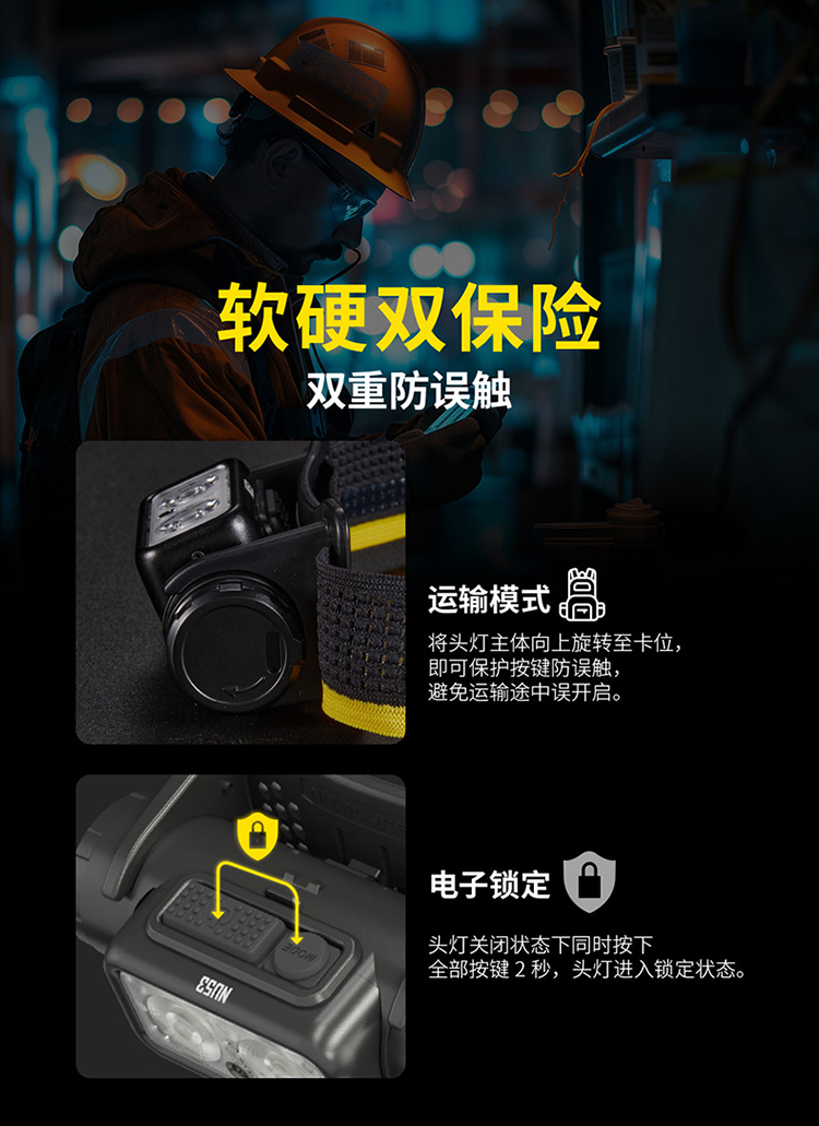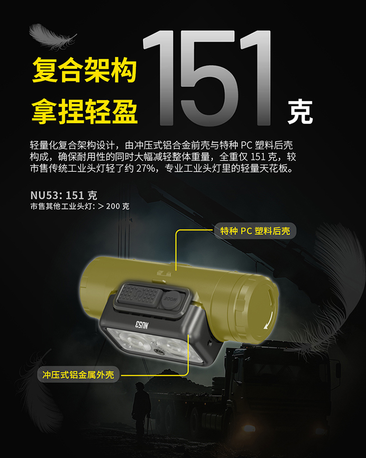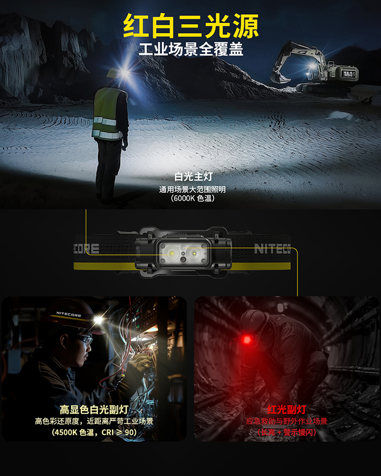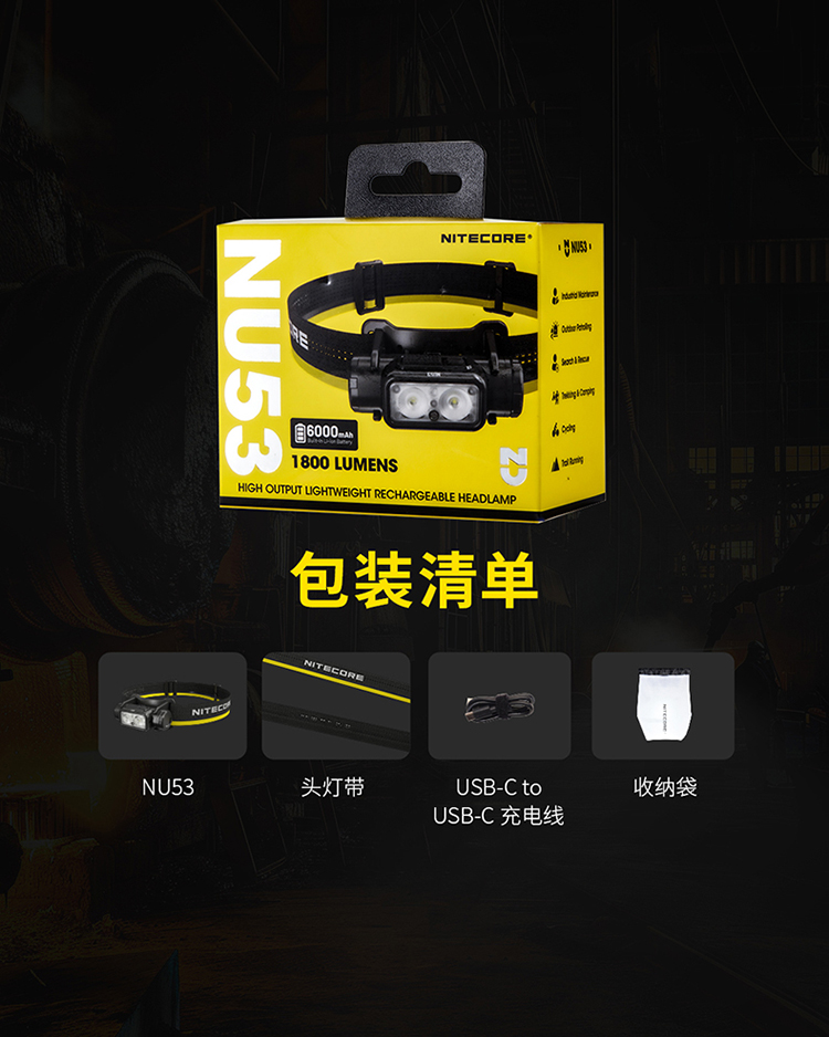 NITECOREナイトコールNU53軽量工业アウトドア作业超点灯照明ランプ高性能防水ヘッドライト