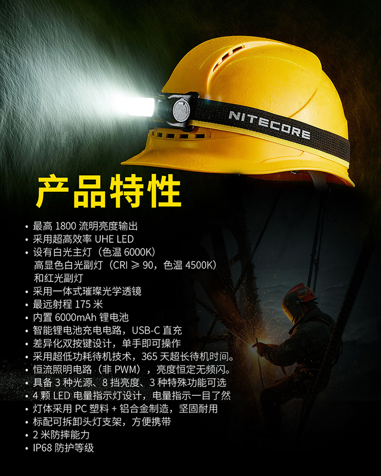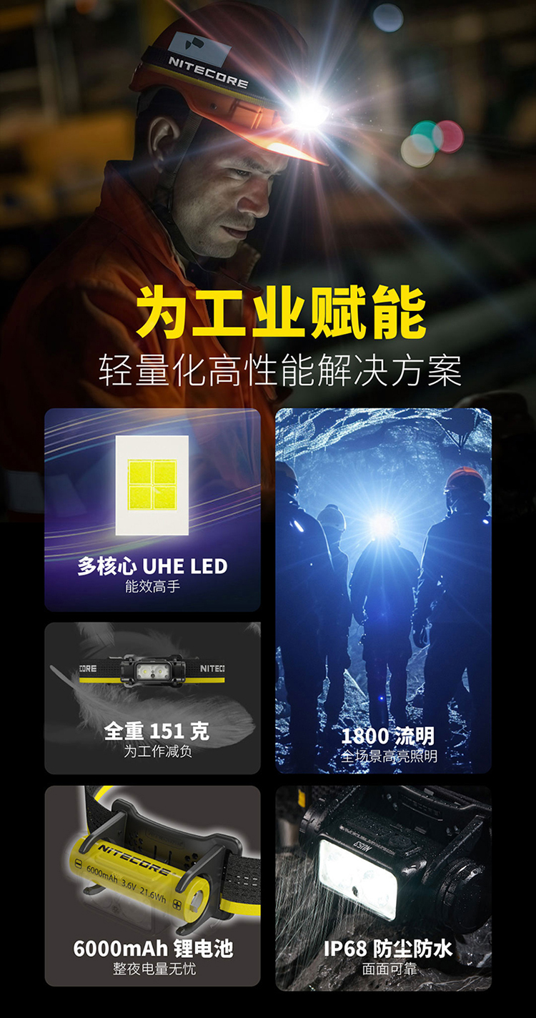 NITECOREナイトコールHU2000工业ヘッドライト分体式軽量プロヘッドライト超明るい照明オーバーホール