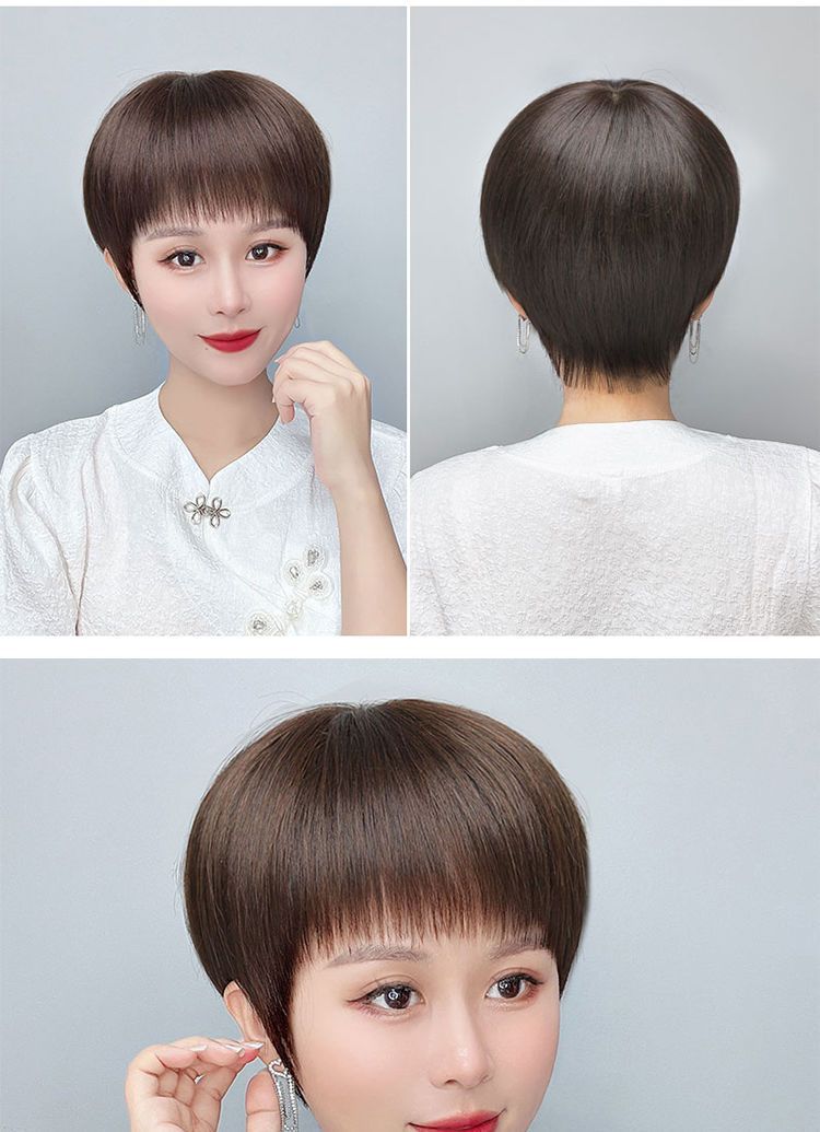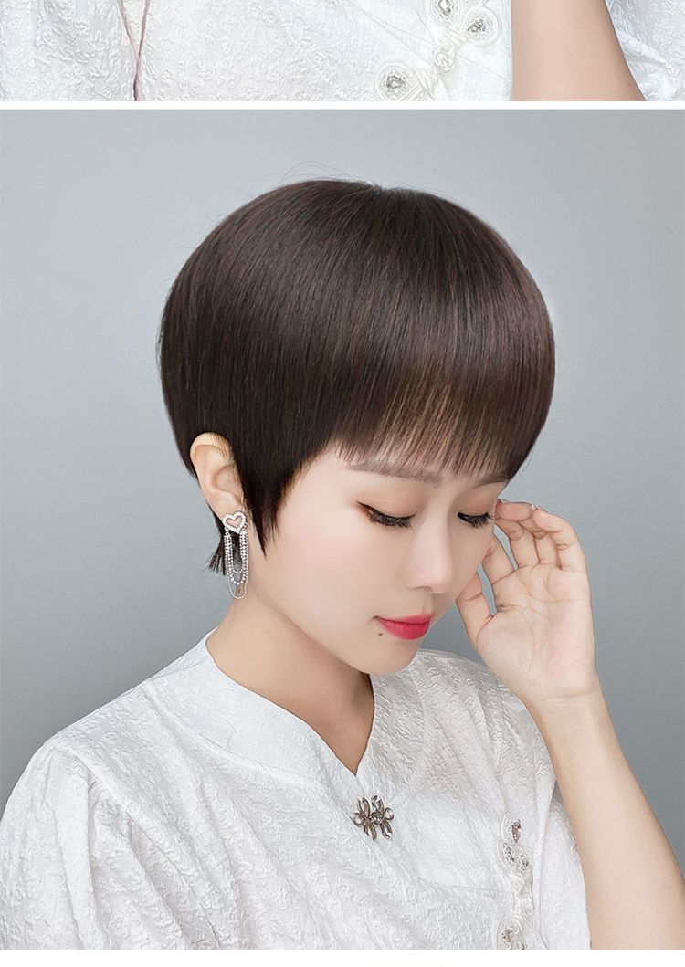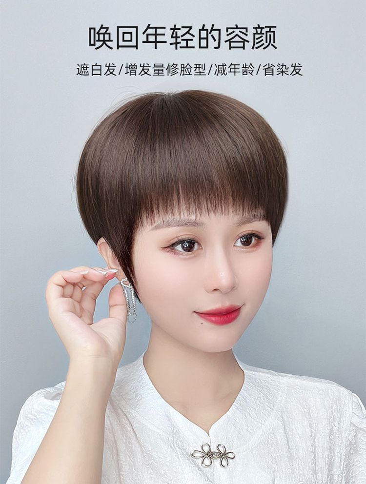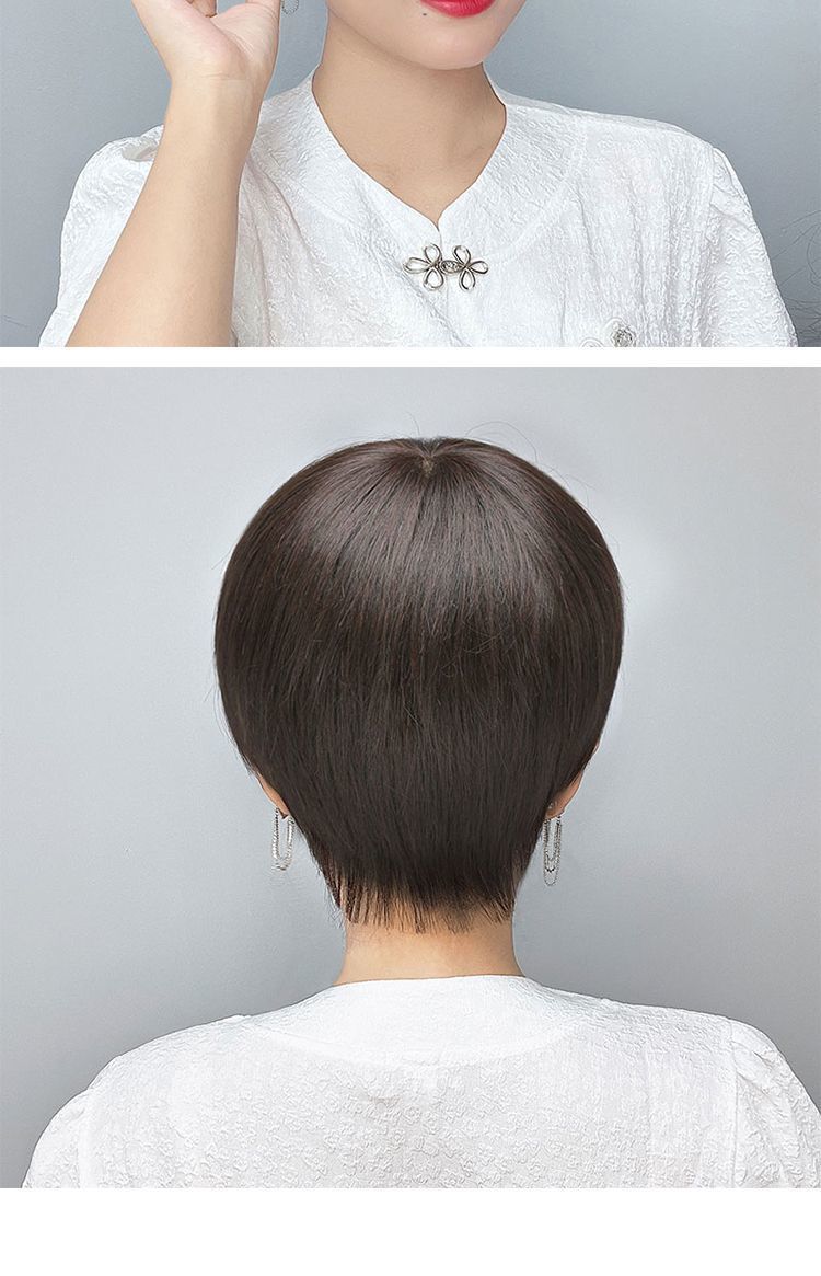かつらの女性の全頭カバーの本当の髪の全人の髪の中高年の女性のショートヘアの自然な髪の毛の短いまっすぐなお母さんの髪カバー