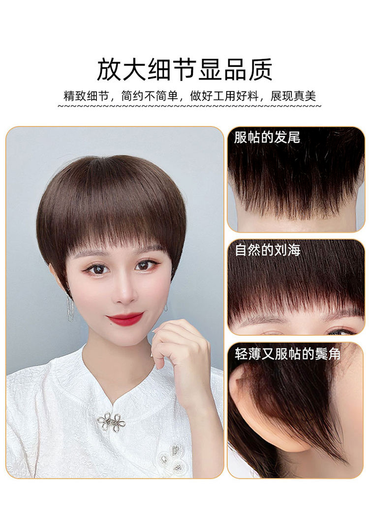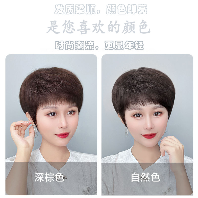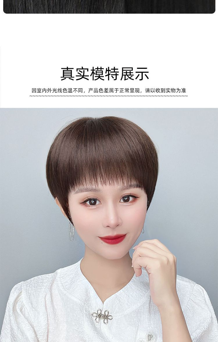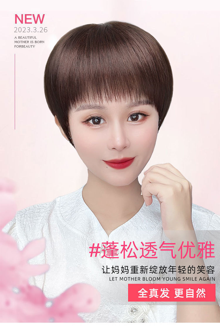 かつらの女性の全頭カバーの本当の髪の全人の髪の中高年の女性のショートヘアの自然な髪の毛の短いまっすぐなお母さんの髪カバー