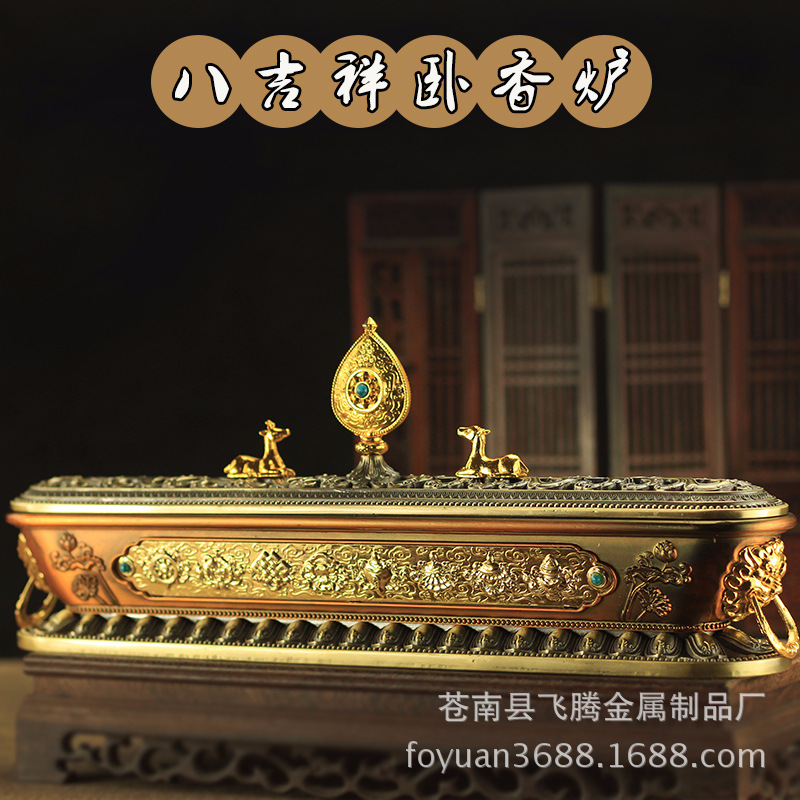 八吉祥の蛇口の臥香炉の大きいサイズの双鹿の法輪は古くさい金の線の香炉の家庭用の線香の箱の薫炉をまねます。