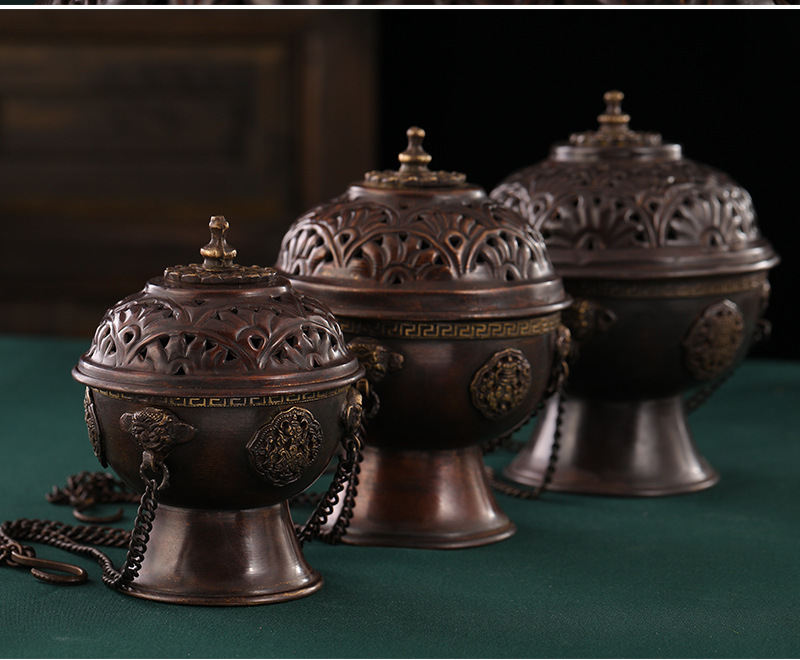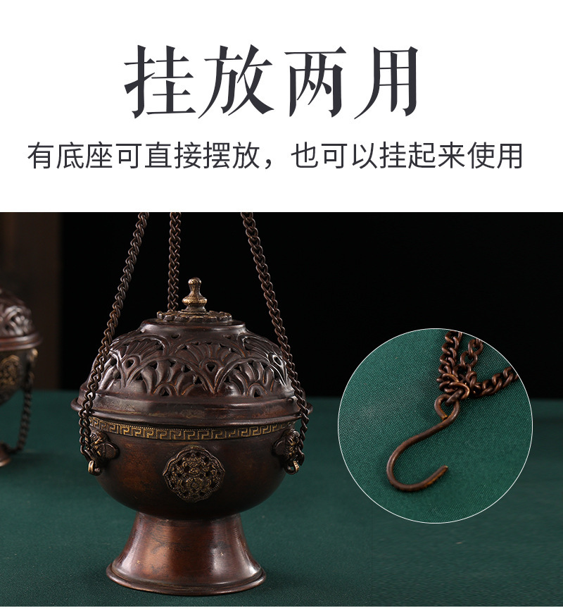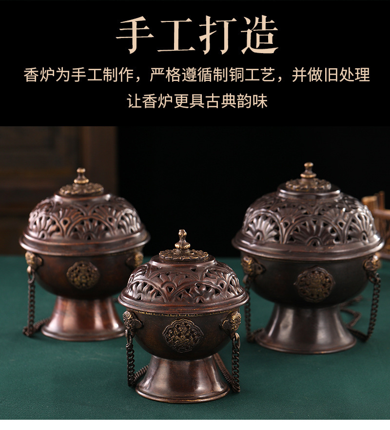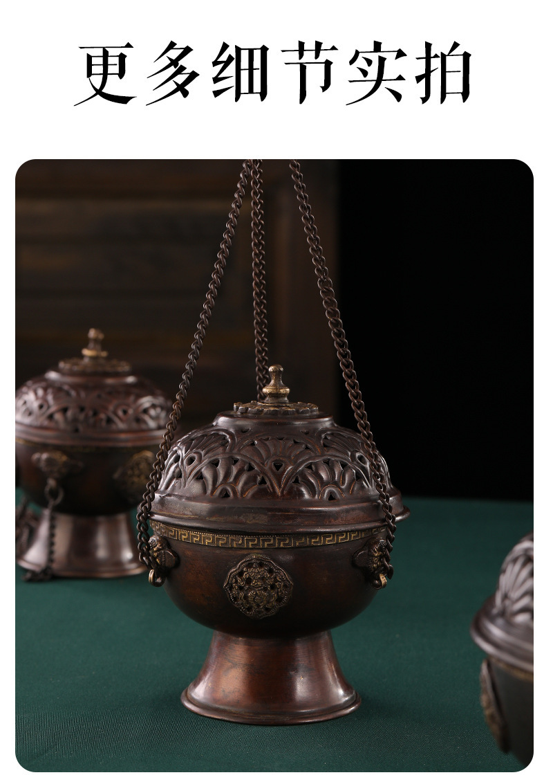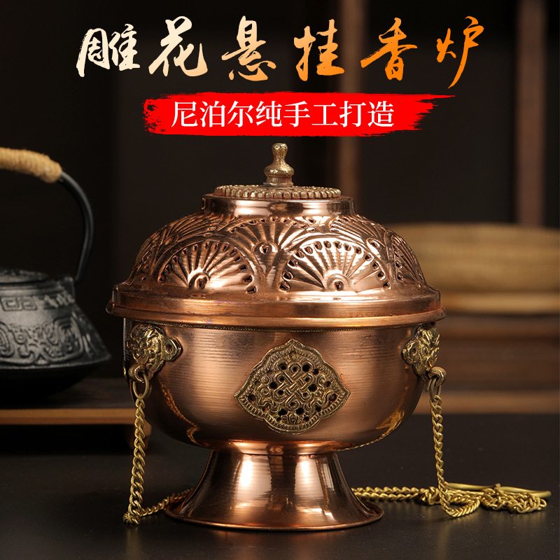 銅吊り下げ香炉ネパール輸入手作り彫刻レトロ銅盤香炉吊り式銅製薫香炉