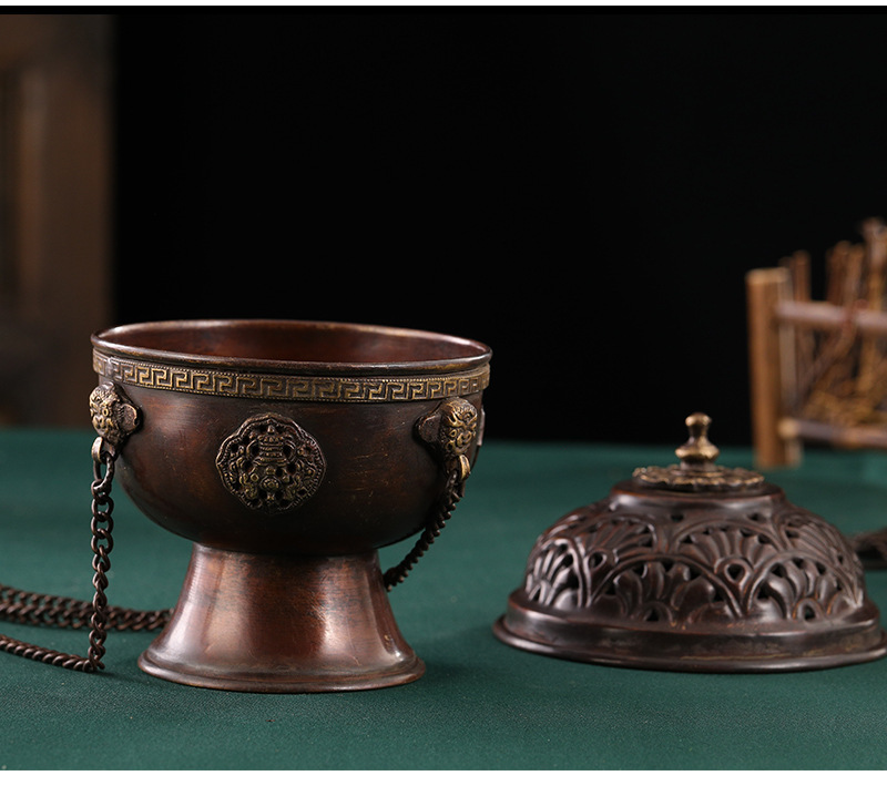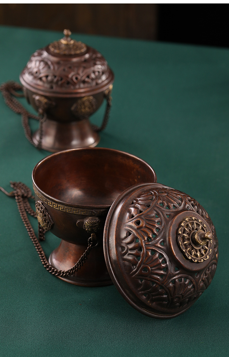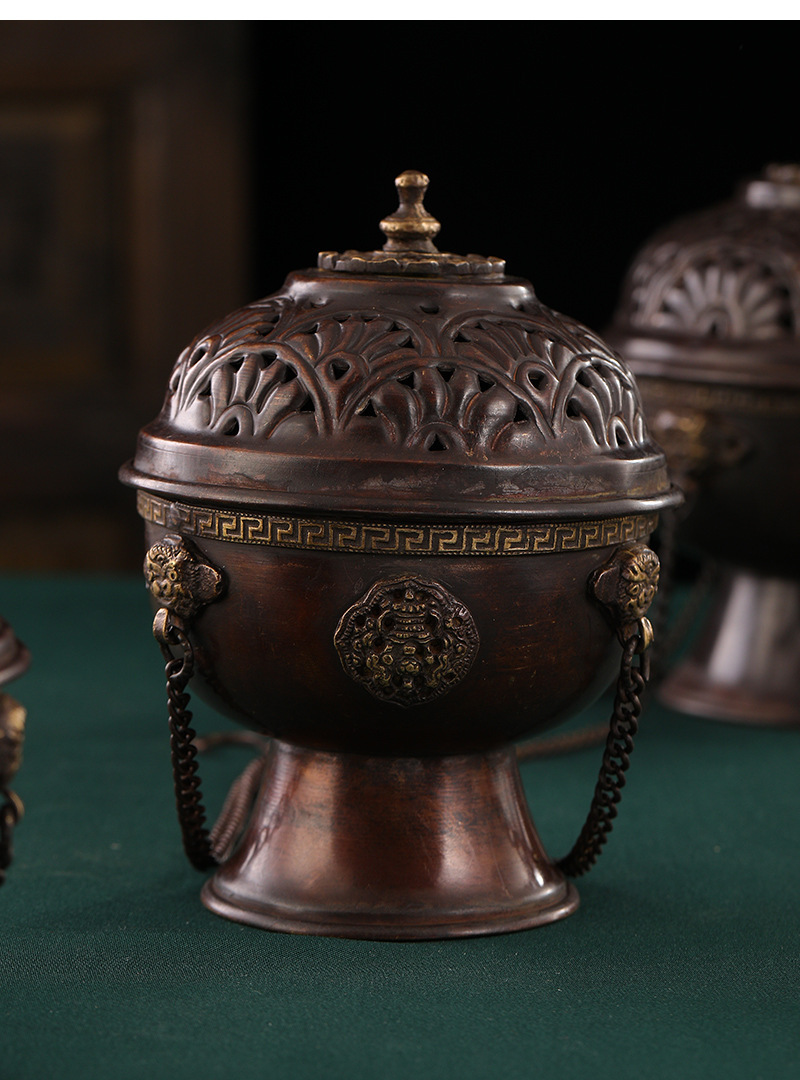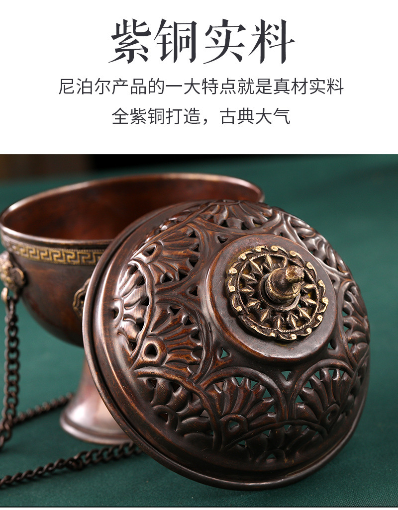 銅吊り下げ香炉ネパール輸入手作り彫刻レトロ銅盤香炉吊り式銅製薫香炉