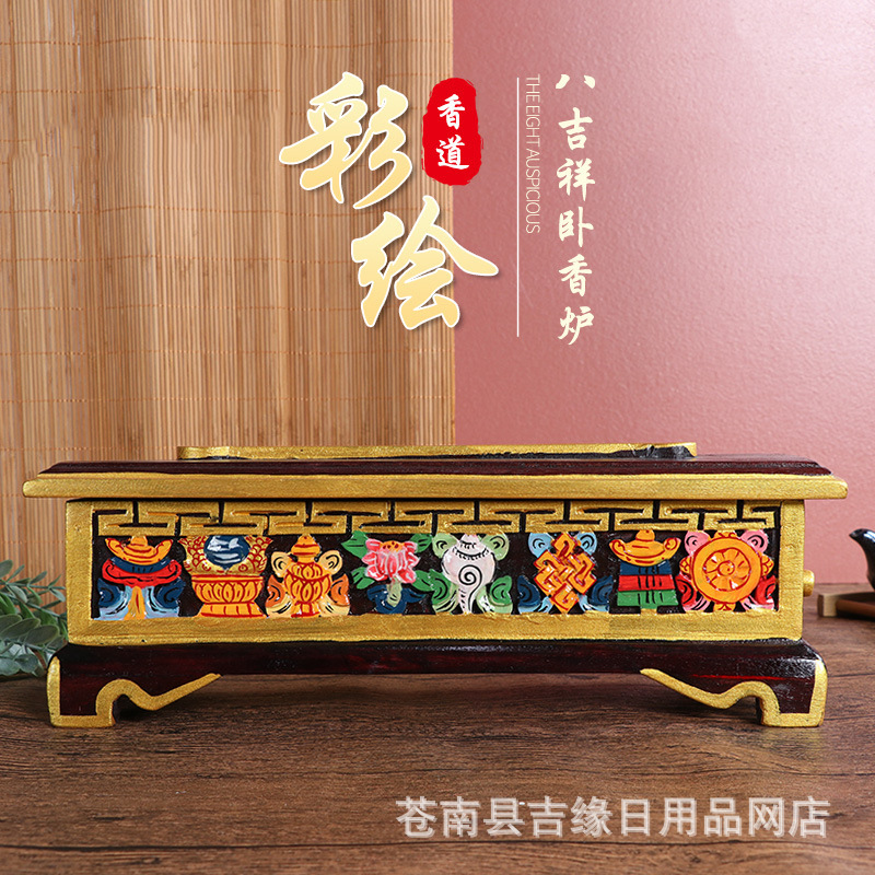 ネパール長臥香炉家庭用室内薫香実木彩絵線香炉八吉祥供仏チベット式香炉
