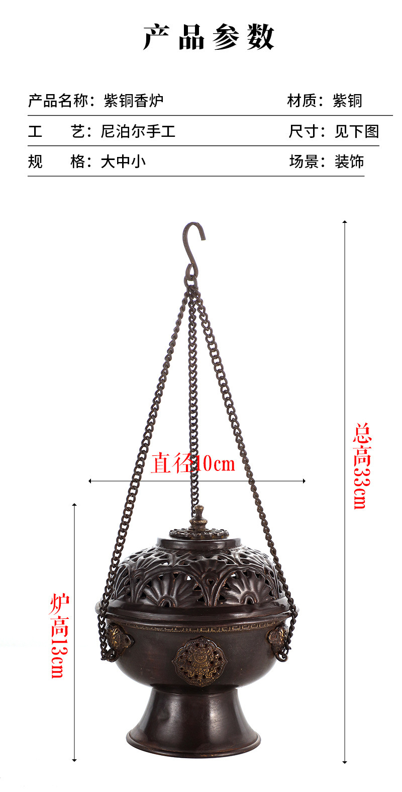 ネパール赤銅吊り香炉手彫りレトロディスク香炉吊り銅香炉ラウンド炉