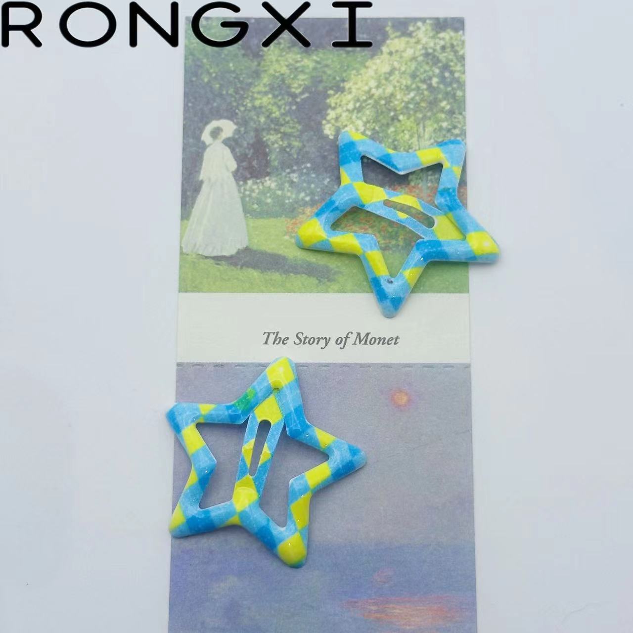 3.2cmの格子縞の多彩な油の五角星の髪の挟みのサイドクリップの子供の髪の挟みの夏の波の点の前髪の挟みの甘いです。