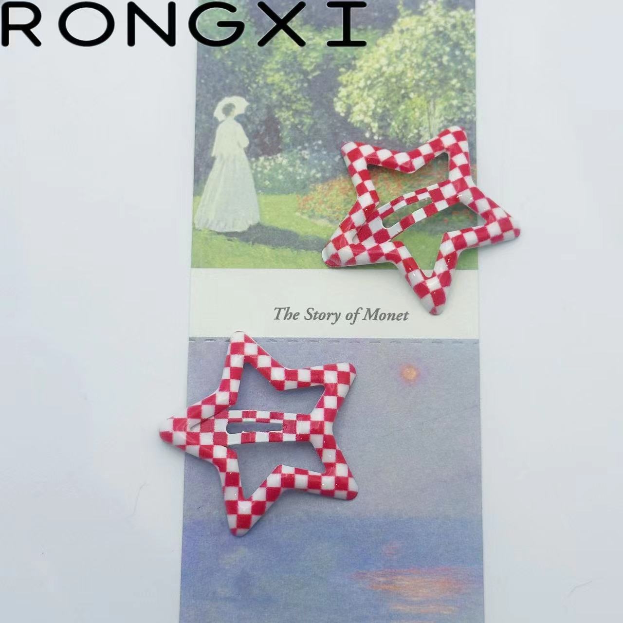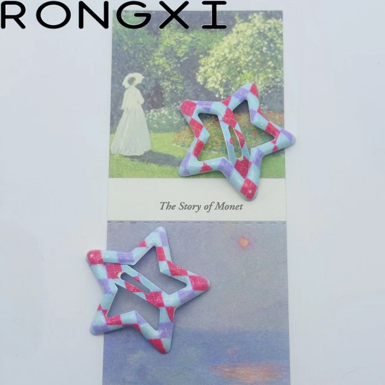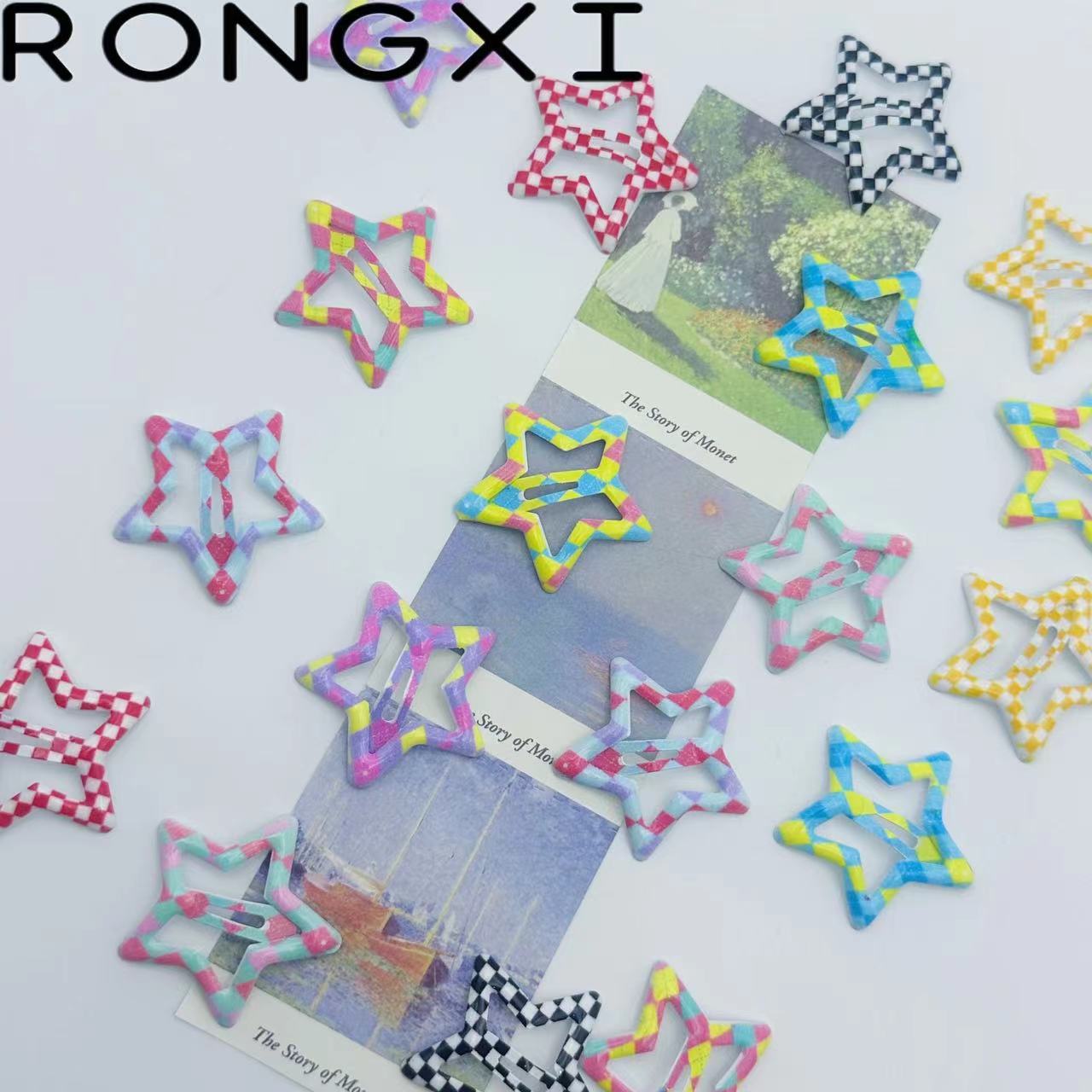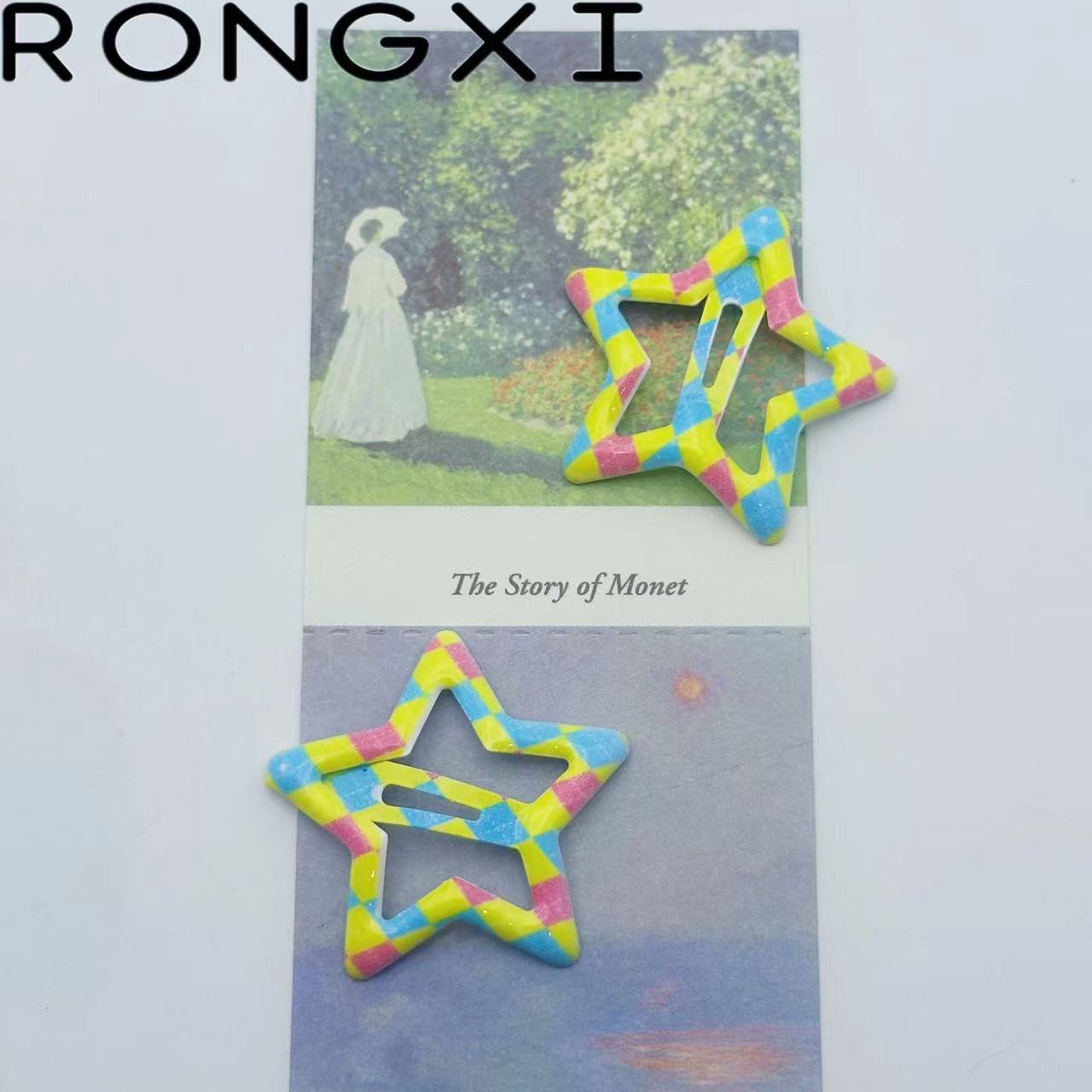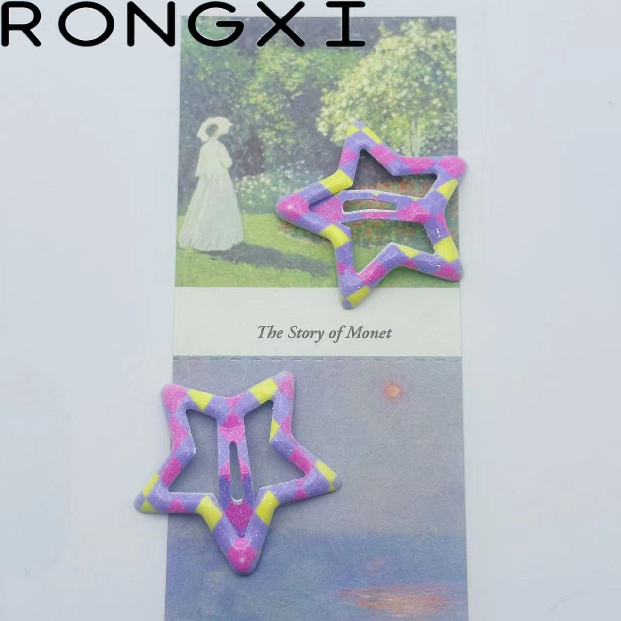 4センチの新型ドーパミンy 2kの透かし彫りの斜めの五角星のヘアピンのサイドクリップの甘い少女の跡のないヘアピン