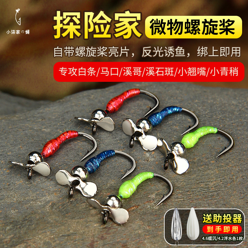 小七探検家の飛ハエフックプロペラスパンコール白条馬口口首微物餌仕掛けセット路亜偽餌