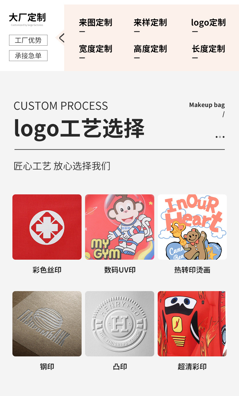 オーダーメイド化粧ポーチプリント可ロゴ高颜値手提げ高级感大容量旅行おしゃれ布芸収纳バッグ