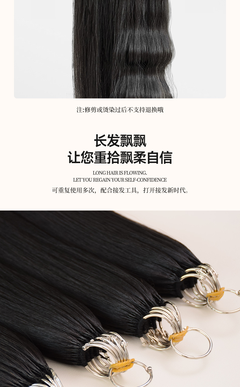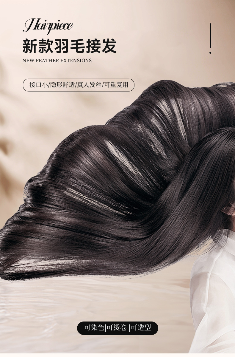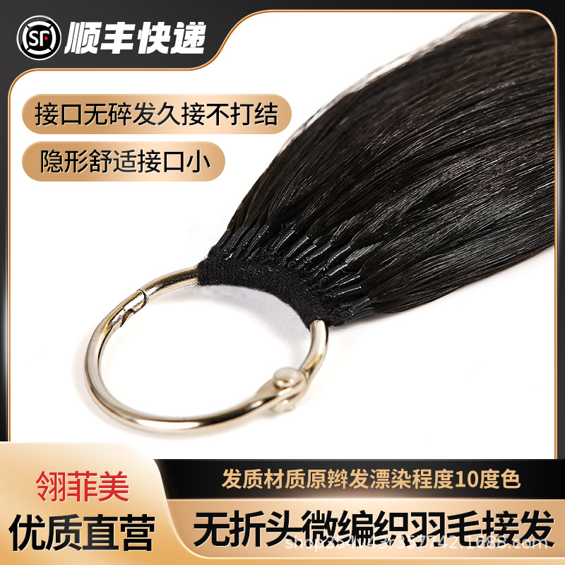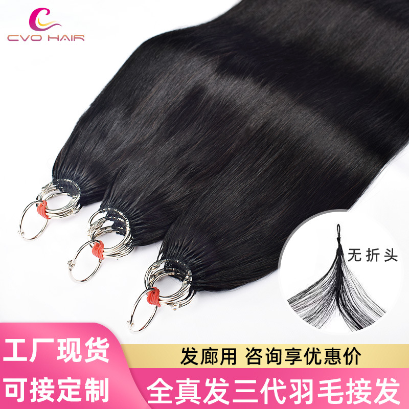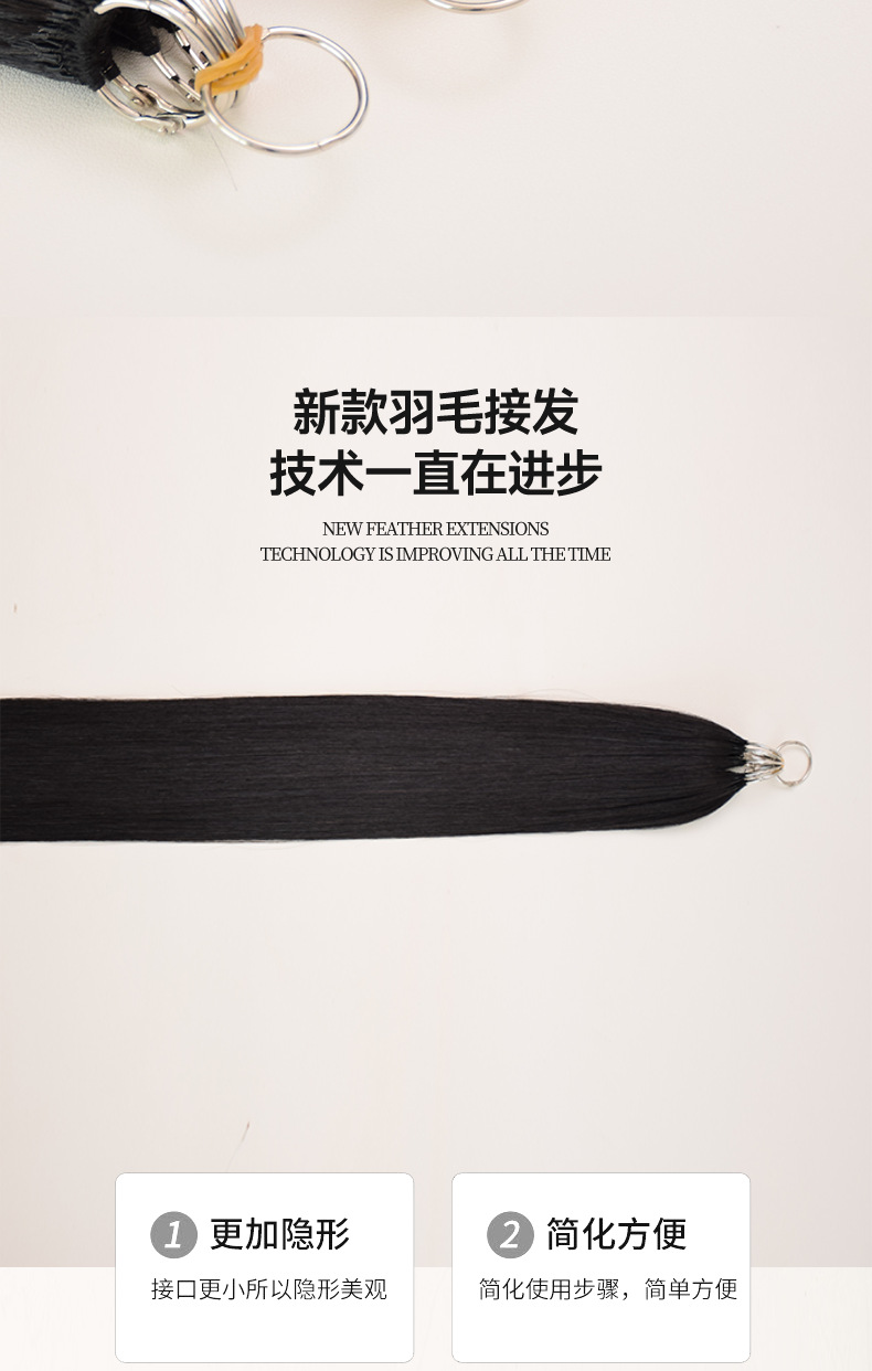 第三世代の羽毛ヘアエクステ、カラーは全て本物の髪で、目に見えず、染められます。跡が残らず、折れにくい、染められる本物の髪のエクステです。