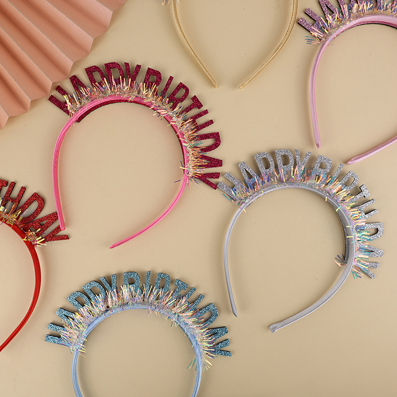 誕生日スパンコールヘッドバンドハッピーバースデーフェルト布ヘッドバンドベーキングデコレーション