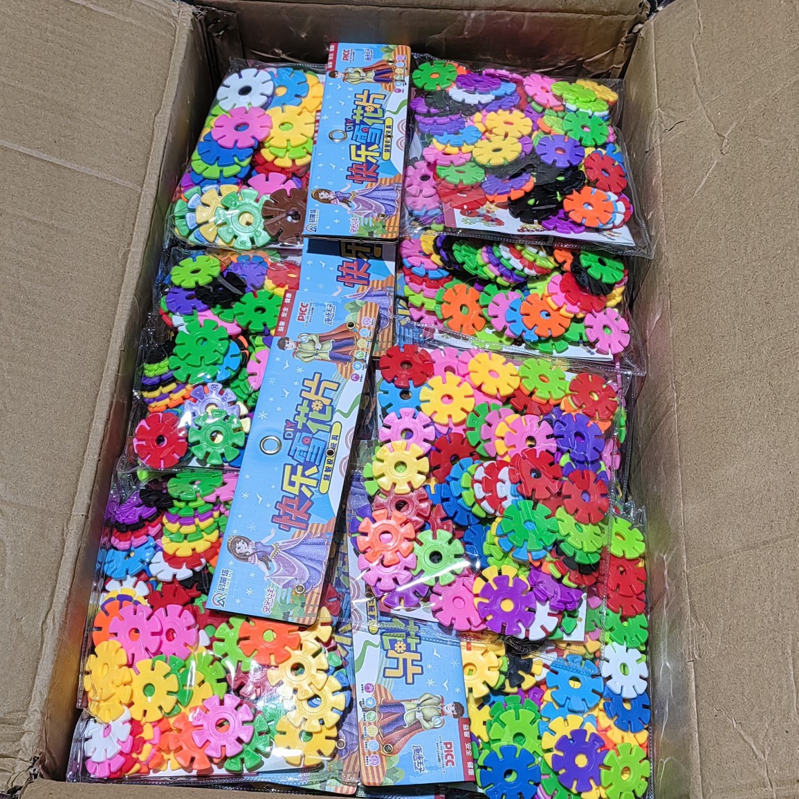既製品の雪花片積み木、子供用中型プラスチック製卓上玩具、幼稚園積み木玩具卸売