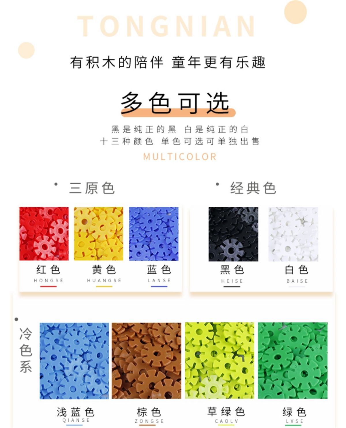 雪花片直径5厘米圆孔儿童玩具拼插大号宝宝早教益智拼装拼图积木
