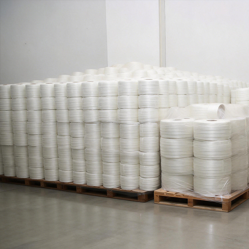 白色繊維バンド 柔軟性のあるポリエステル繊維梱包バンドロール 13 16 19 25 32 mm 原産地メーカー