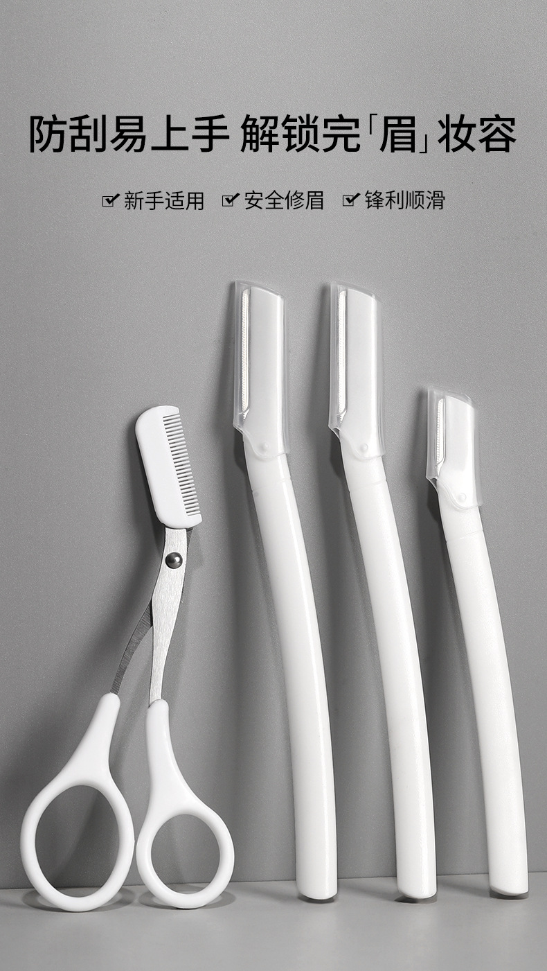 眉毛修理ナイフセット安全型マクロ眉毛剃刀小櫛眉毛切りステンレス眉毛修理刀剃毛刀神器