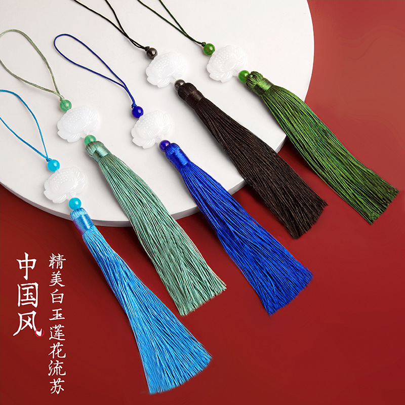 メーカー現物両面白玉蓮花流蘇穂子吊穂扇垂直流蘇ストラップ古装アクセサリー部品