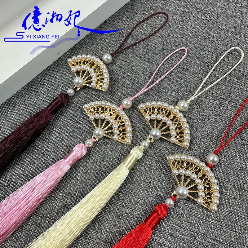 12B-3镂空珍珠扇12cm穗子古装汉服配饰压襟禁步服装吊坠服装辅料