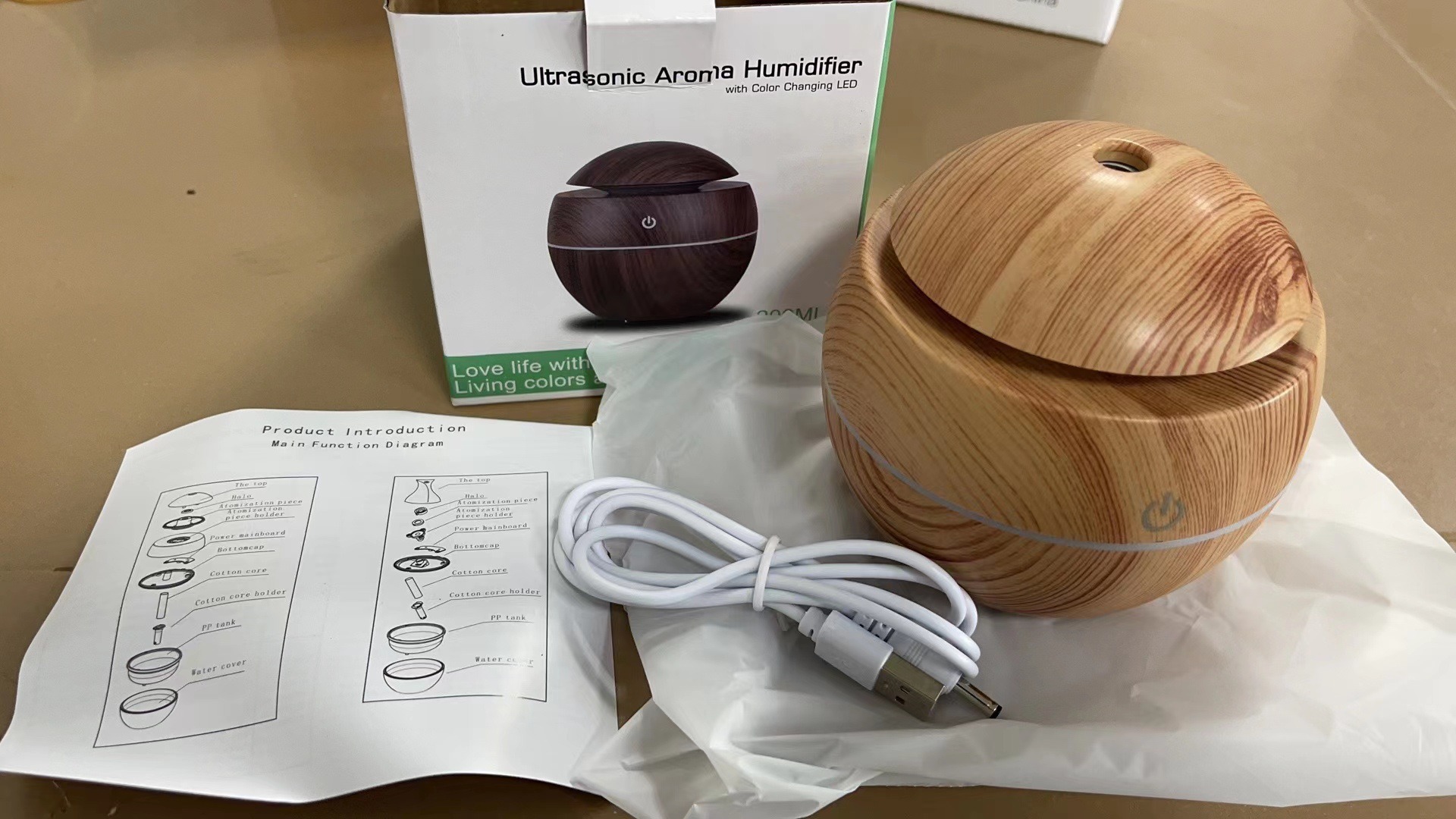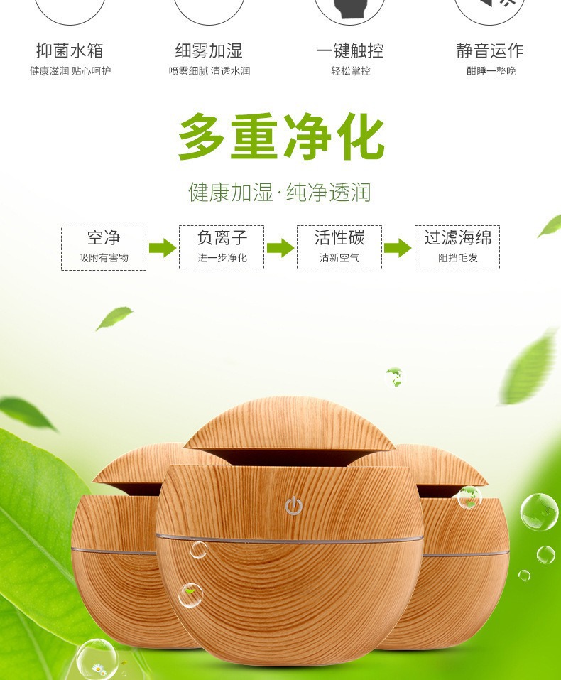 国境を越えた新型携帯ミニ小型木目球家庭用大デスクトップ空気加湿器清浄機アロママシン