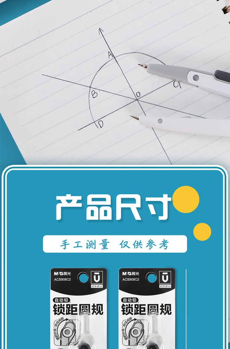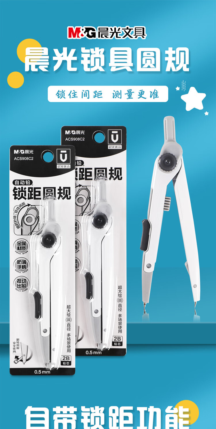 晨光ACS908C2锁距圆规自动铅圆规金属学生绘画图工具多功能可锁定