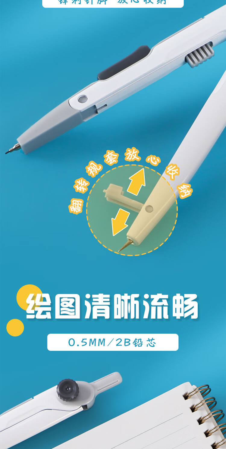 读数圆规初中生专用高颜值考试绘图工具小学生专用数学工具套装