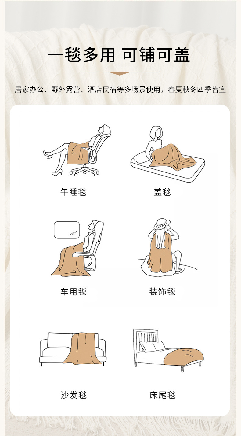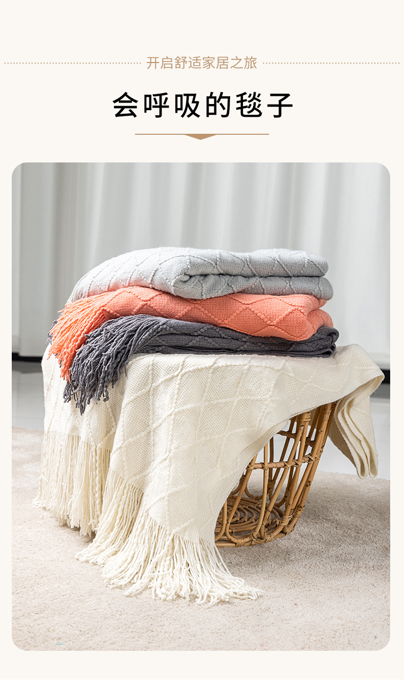 北欧風ソファカバーブランケット 薄手 2025年新作 オフィス昼寝用A級ニット毛布 航空ブランケット 高級感ブランケット