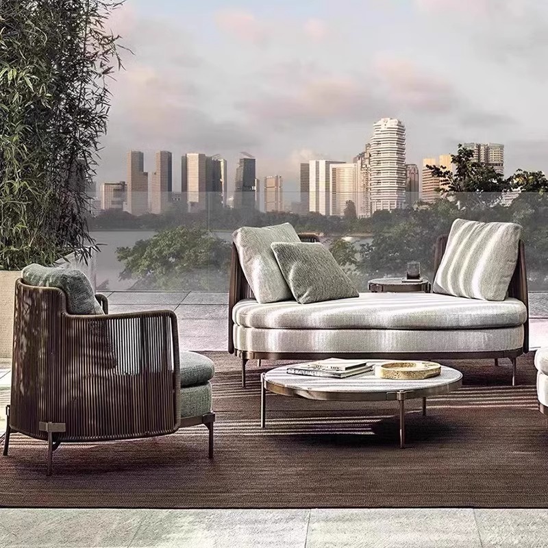 デザイナー屋外ソファ组み合わせ北欧コテージガーデン庭のビル部籐椅子ホテル屋外籐编み家具