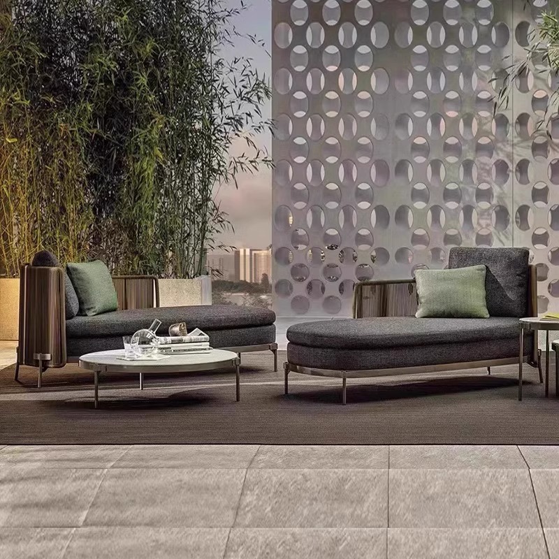 チーク材屋外ソファ中庭ガーデン防錆木材デザイナー屋外バルコニーレジャー籐椅子ホテル家具の組み合わせ
