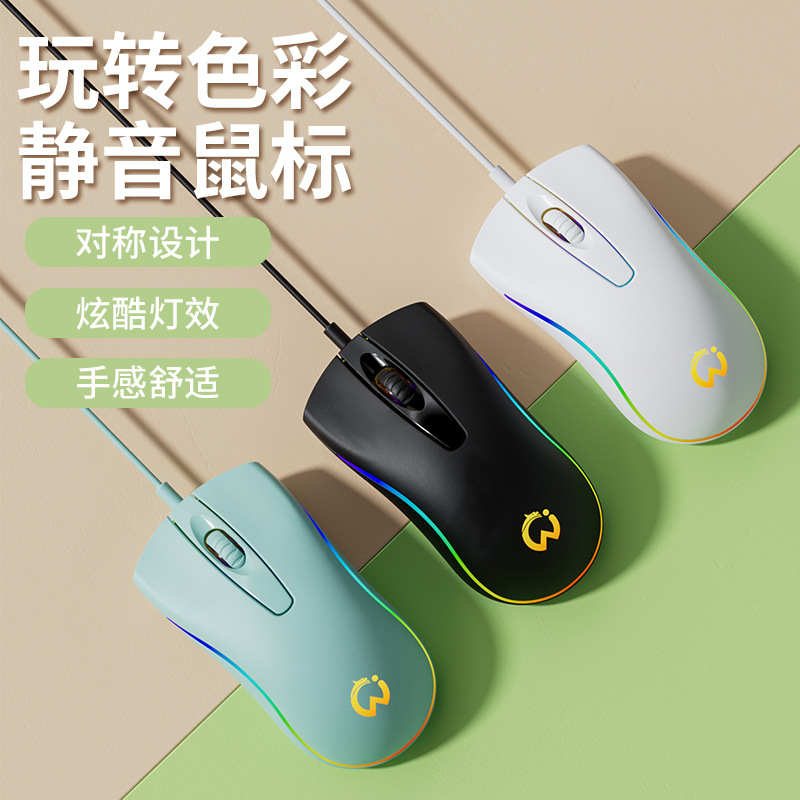 ゲーム用静音マウス 有線USB オフィス/家庭用 ノートパソコン/デスクトップ専用 eスポーツ用 発光デスクトップマウス