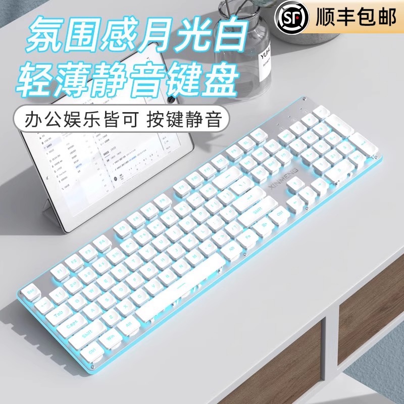 ワイヤレスキーボード機械手触り静音コンピュータbluetooth充電高颜値女子オフィスパンクマウスセット
