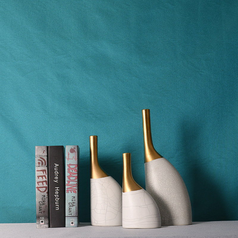 イタリア式の軽い豪華なひび割れの金メッキのアイデアの花器の新しい中国式のヨーロッパ式の簡単な陶磁器の花瓶の置物の卸売り