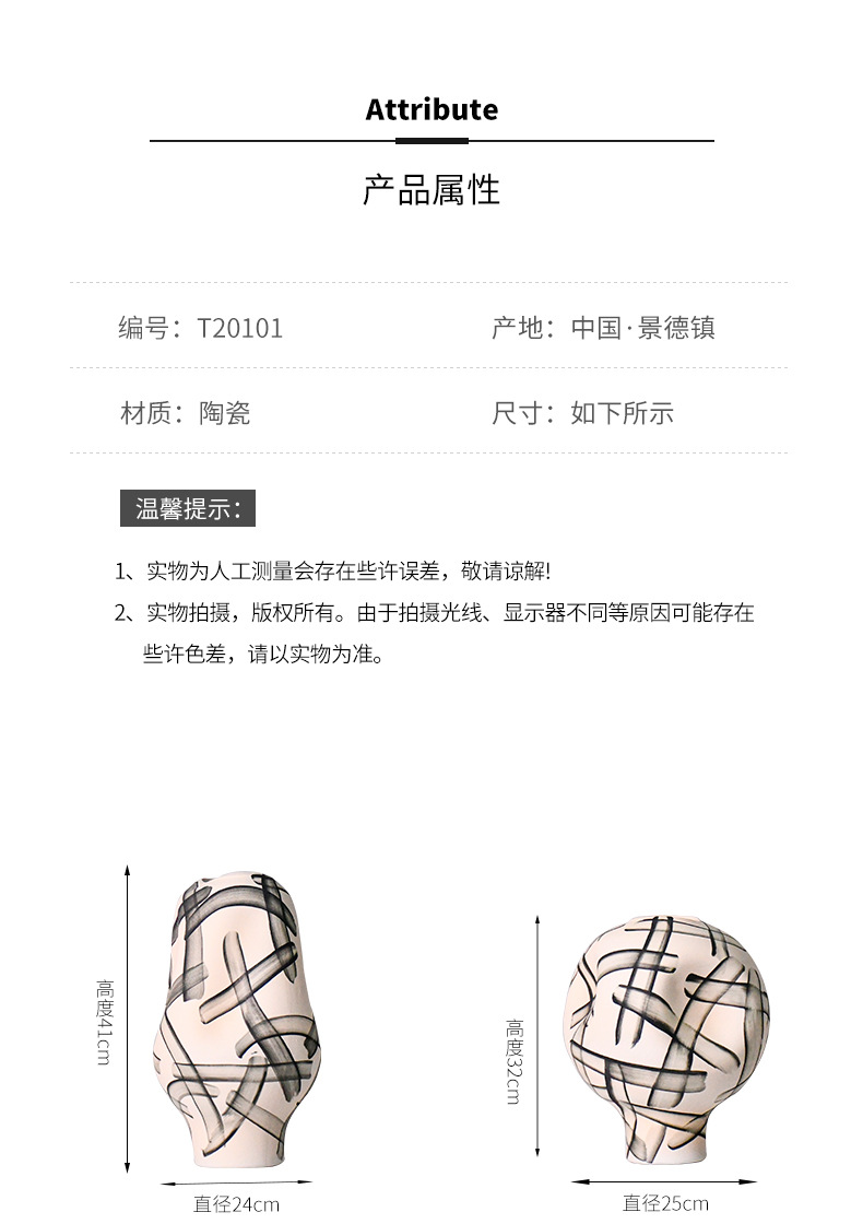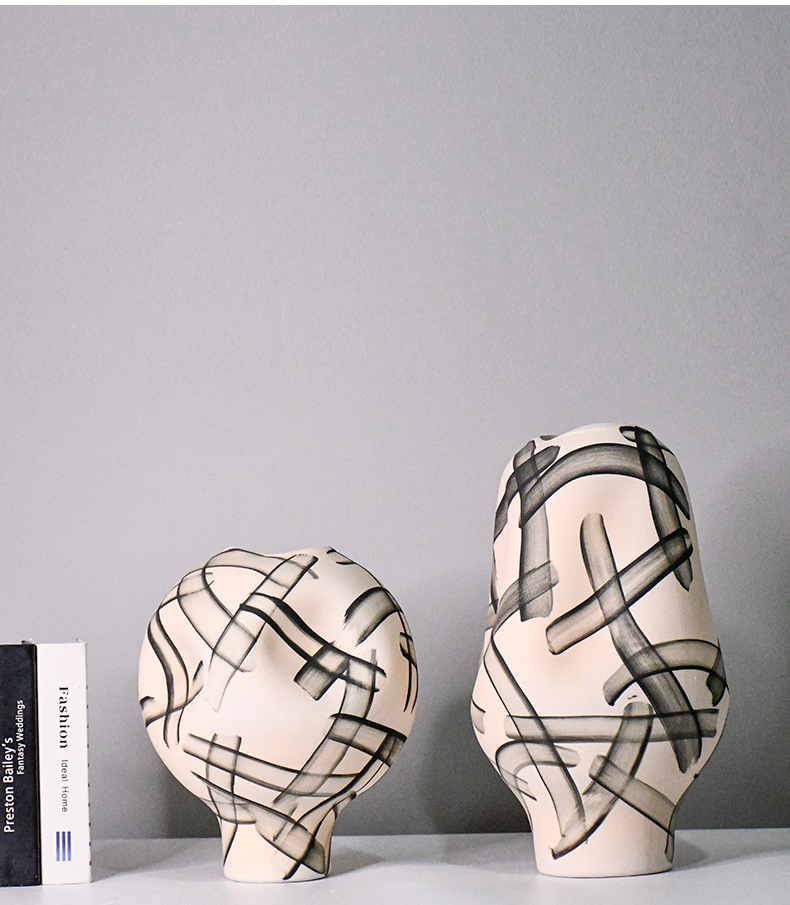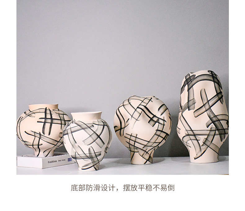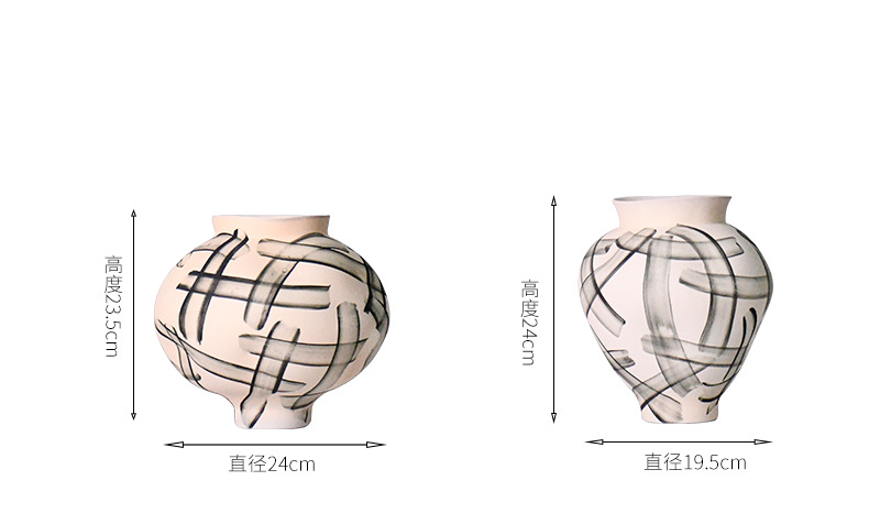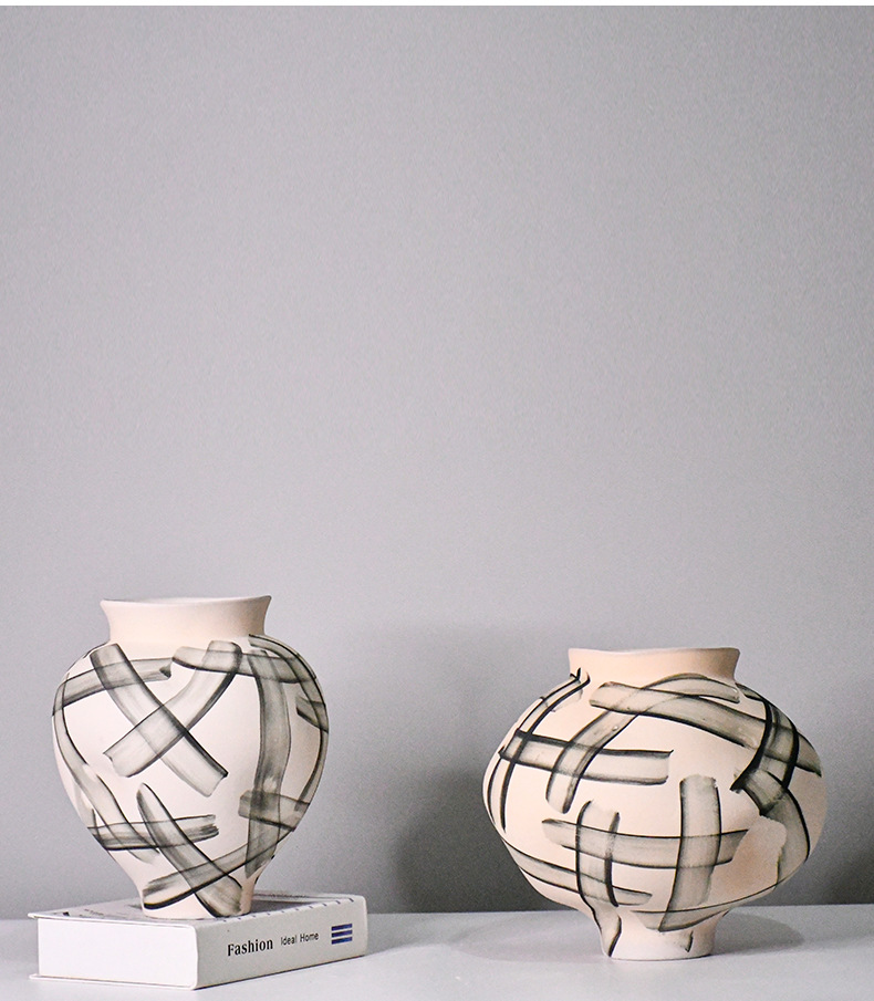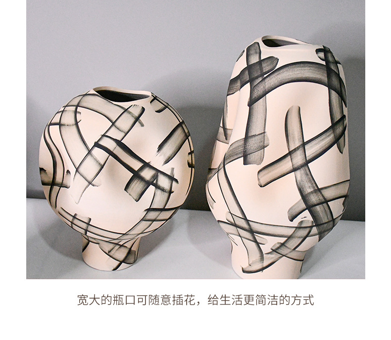 白黒手描きクリエイティブ陶磁器花器現代中国式ホームホテル民宿玄関背景飾り花瓶生け花