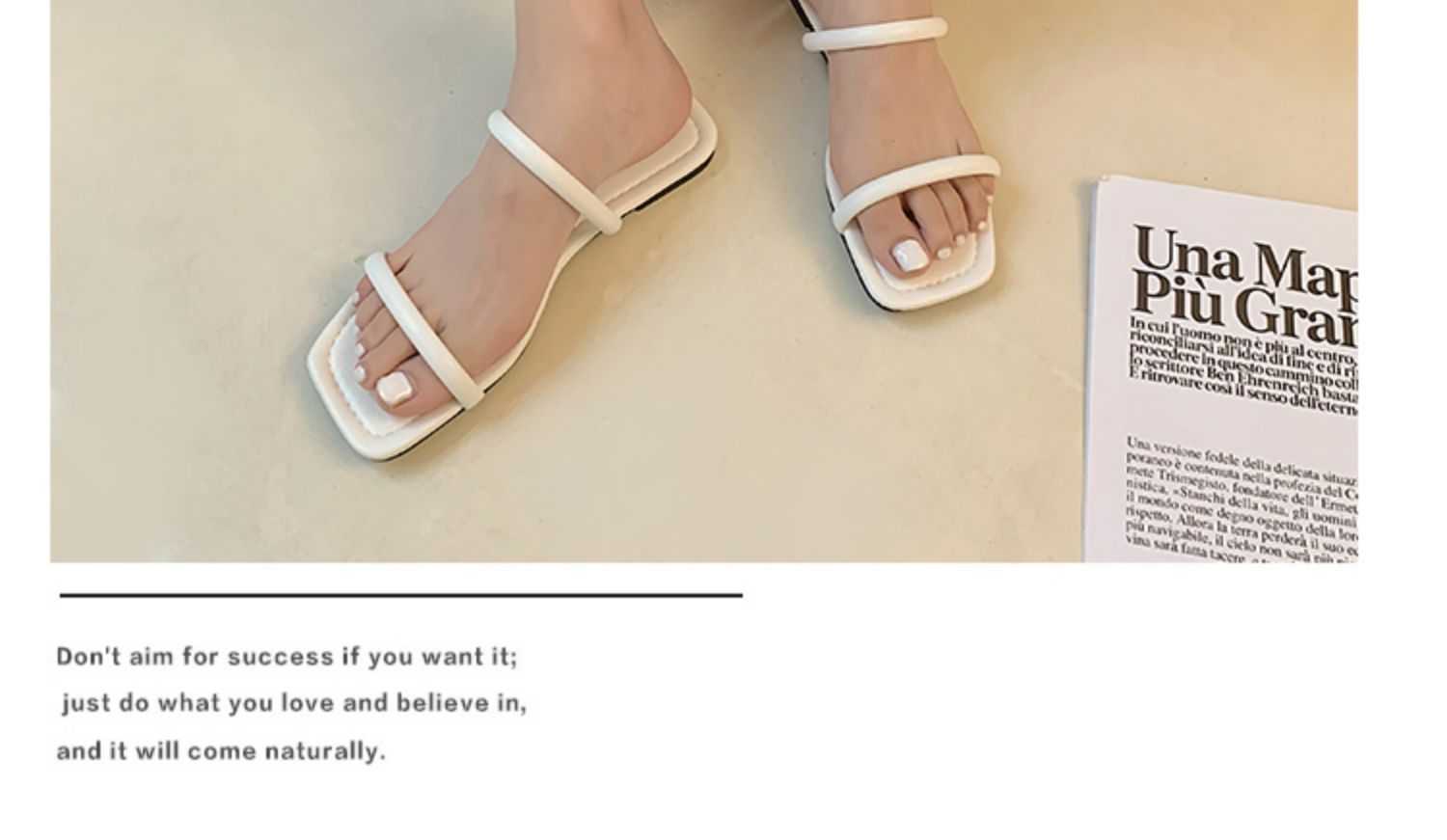 ネット赤角頭サンダル女2023新夏の小衆露指軟底一字帯スリッパ外着ビーチ靴
