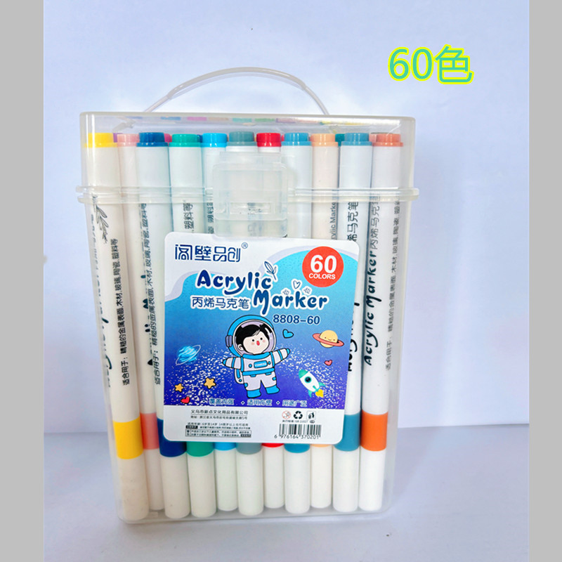 120色桶装丙烯马克笔学生美术绘画叠色不透纸彩色防水速干高光笔
