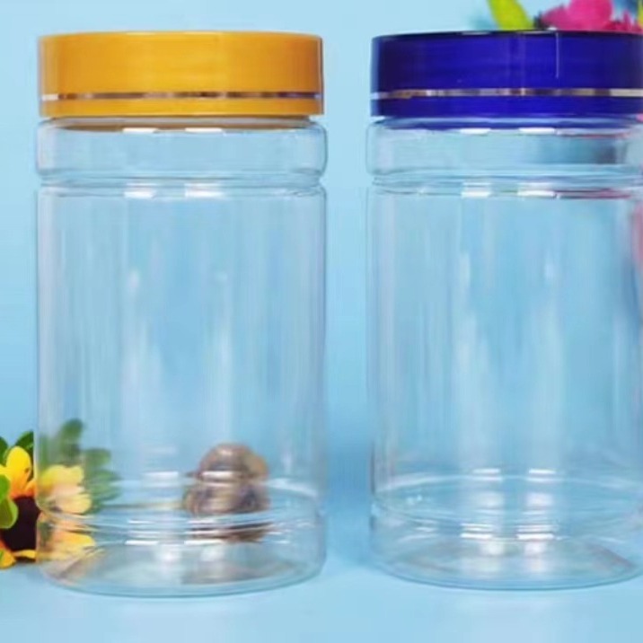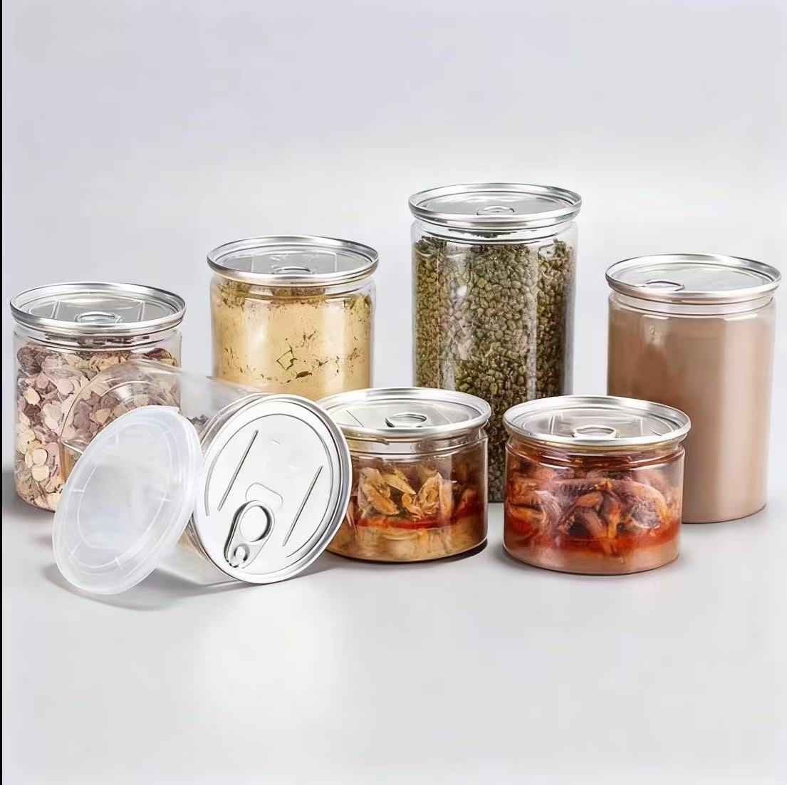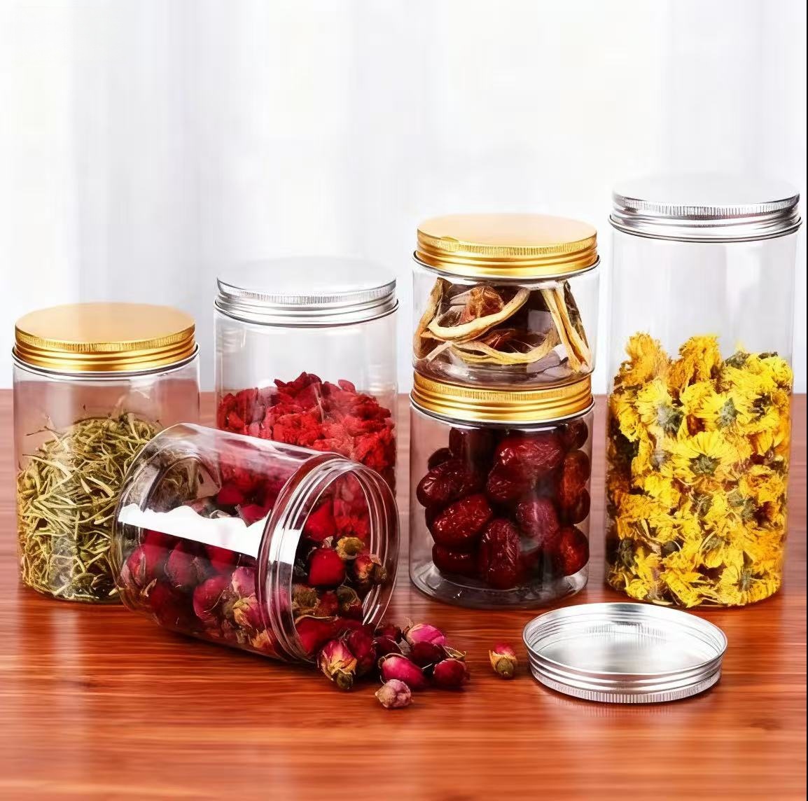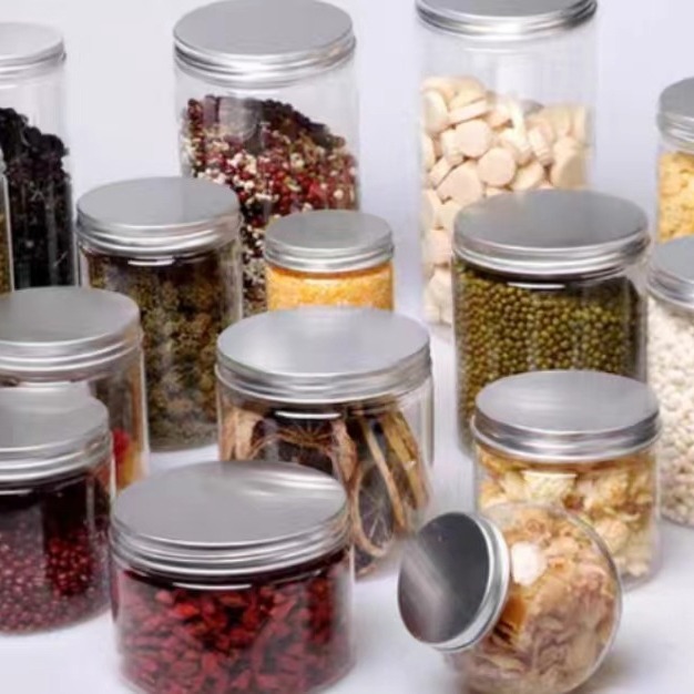 8618メーカー卸売り食品級円形透明ペットボトル雑穀ナッツ花茶使い捨て密封缶