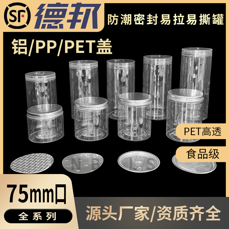 工場直売75口径プラスチック缶食品級包装瓶密封漏液pet透明缶空瓶蓋付き