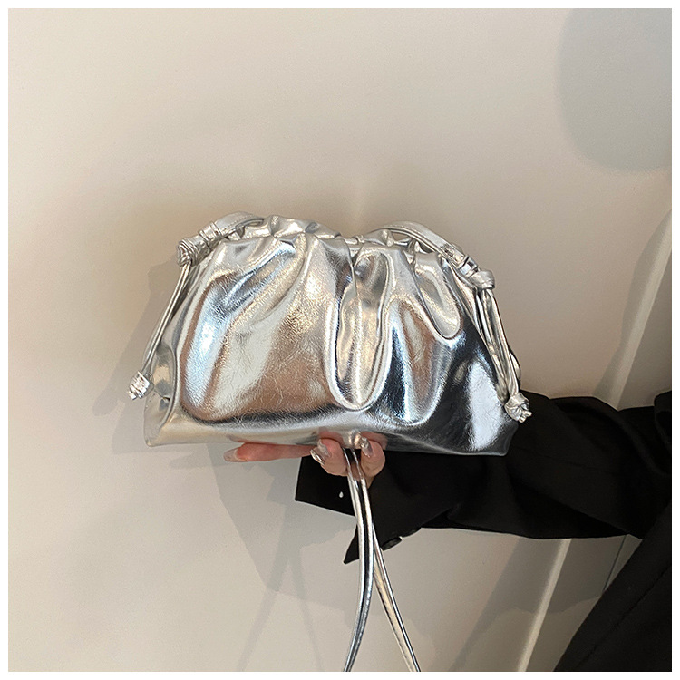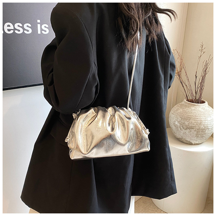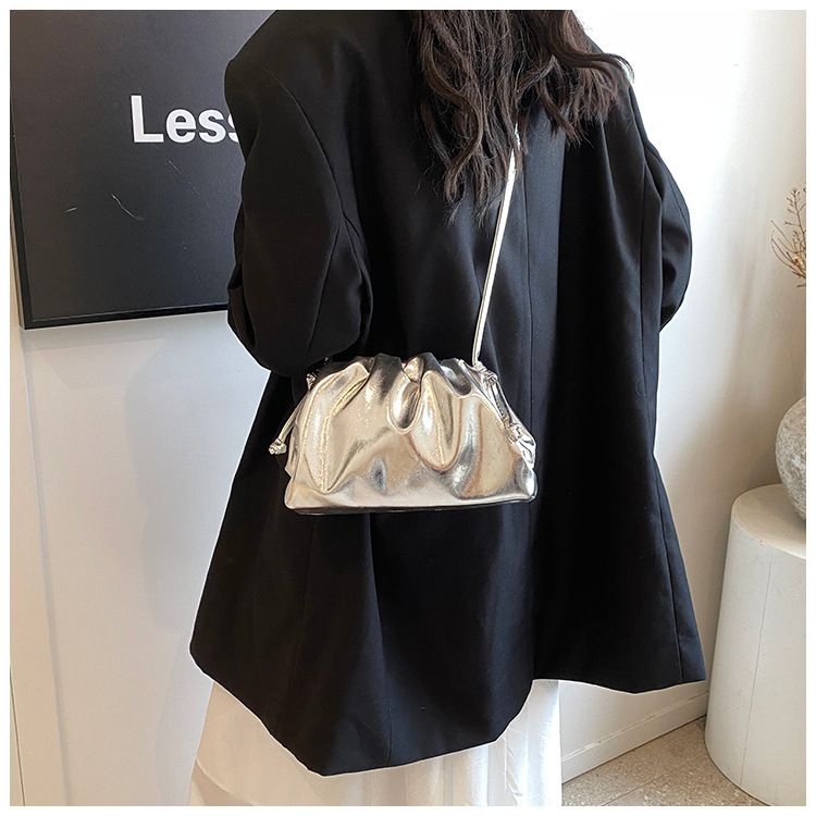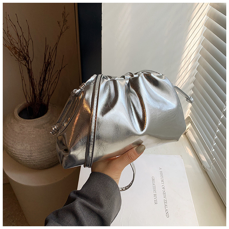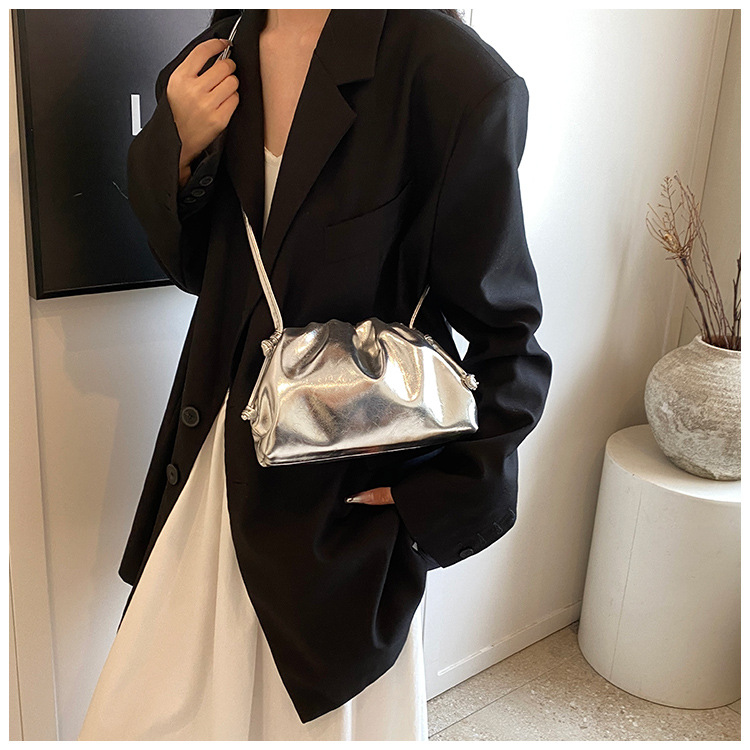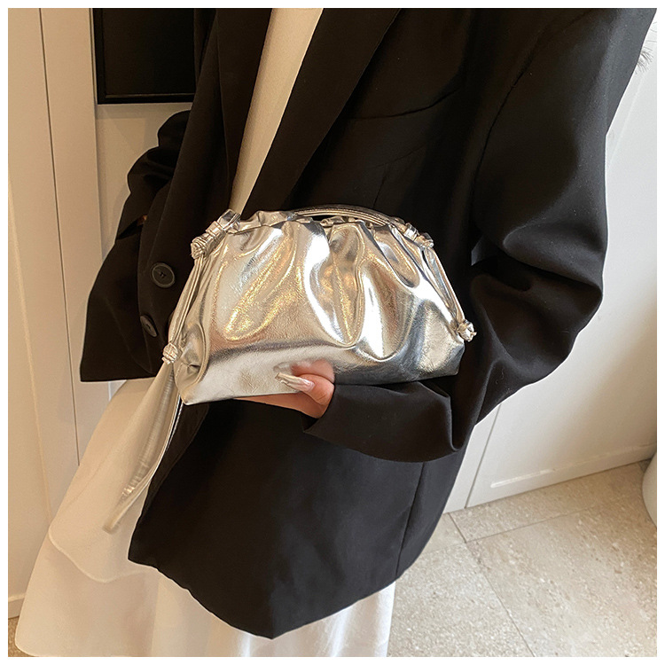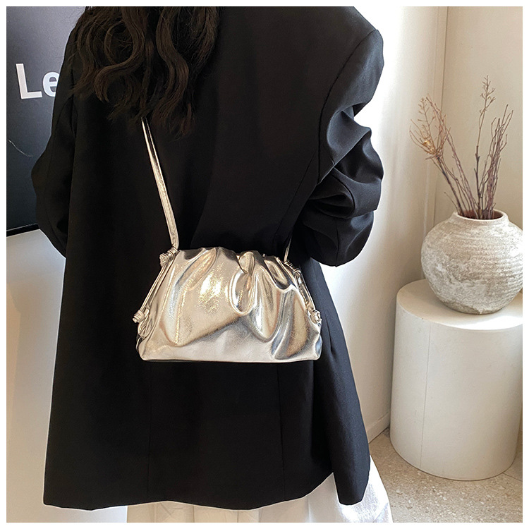 国境を越えたバッグの女性2024の新しいペンキの雲のバッグのカジュアルなシングル肩の純色のクリップのしわのバッグのファッション的な丸いバッグ