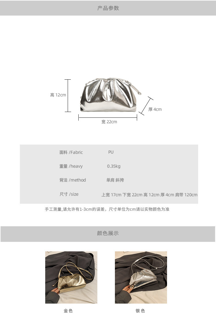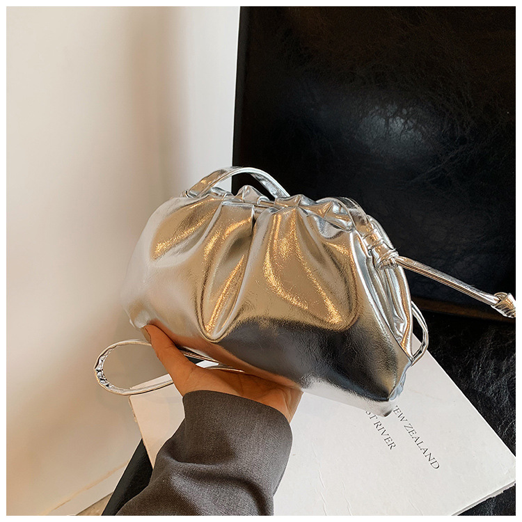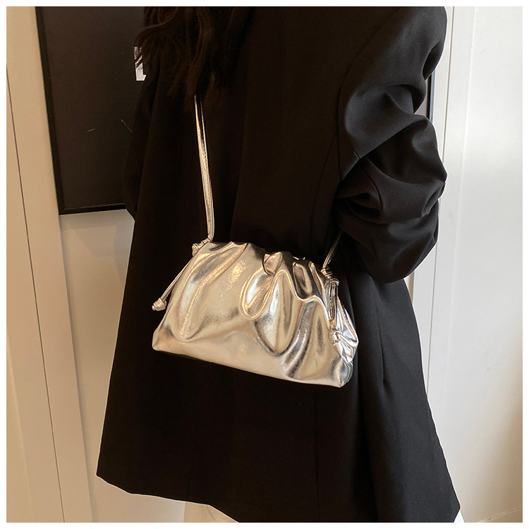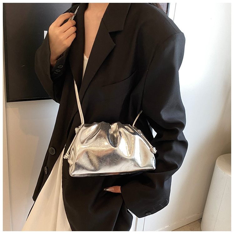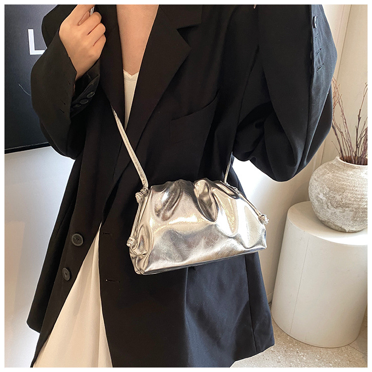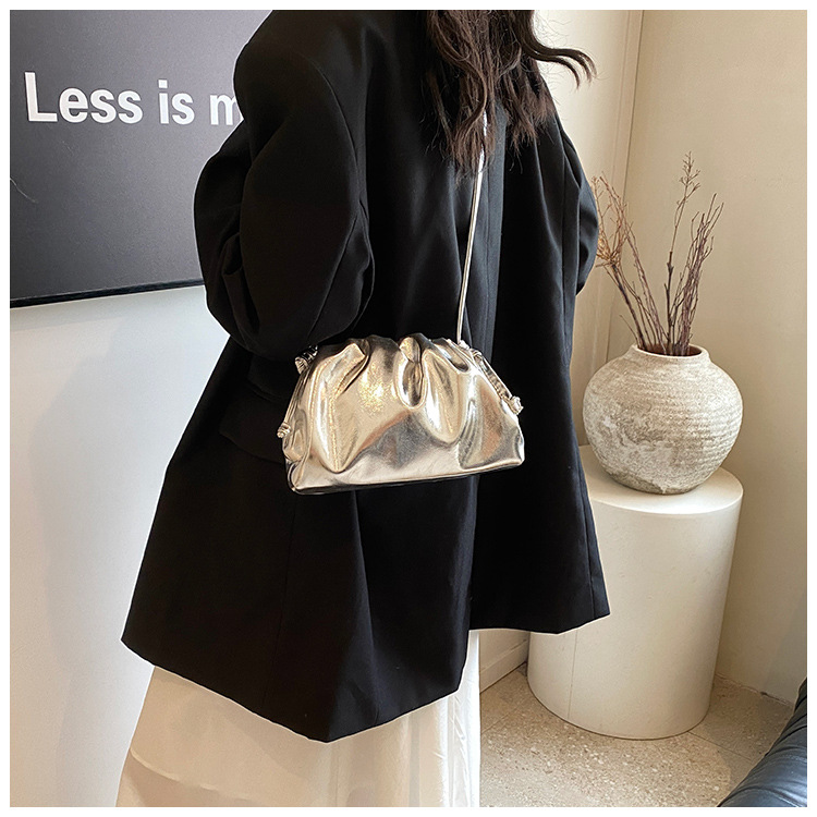 国境を越えたバッグの女性2024の新しいペンキの雲のバッグのカジュアルなシングル肩の純色のクリップのしわのバッグのファッション的な丸いバッグ