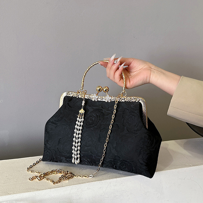 クロスボーダーバッグ女性のイブニングフラワークリップバックルシェルバッグ 2025 春の新パールハンドバッグチェーンクロスボディバッグ