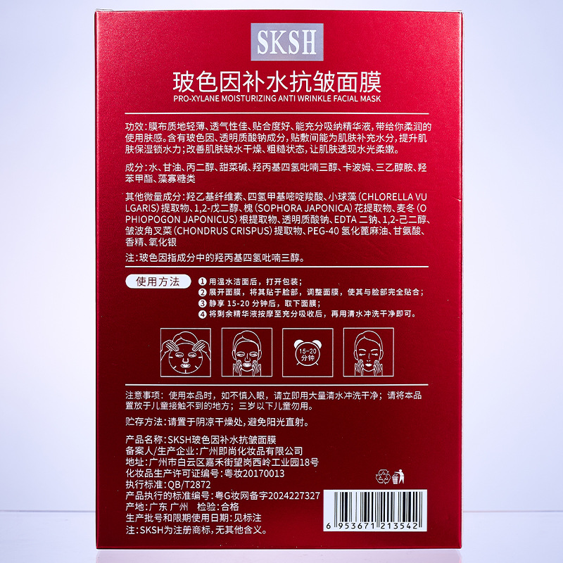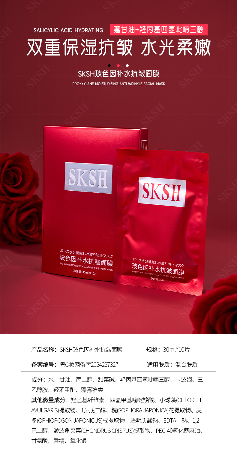 SKSH玻色因补水抗皱面膜小分子抗初老双重保湿滋润紧致提亮面膜贴
