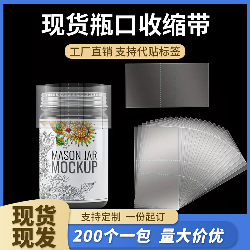 跨境同款透明瓶口热缩膜穿孔两头通封口收缩带果酱罐头瓶盖收缩膜