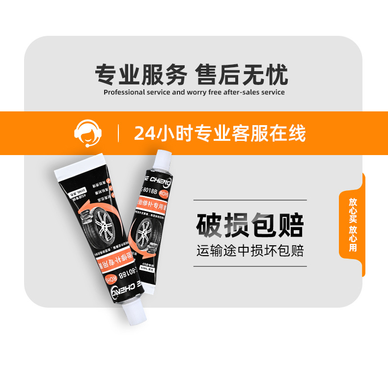 越境特別供給英語版タイヤ修理特殊接着剤車のタイヤサイド破損修理接着剤防水充填