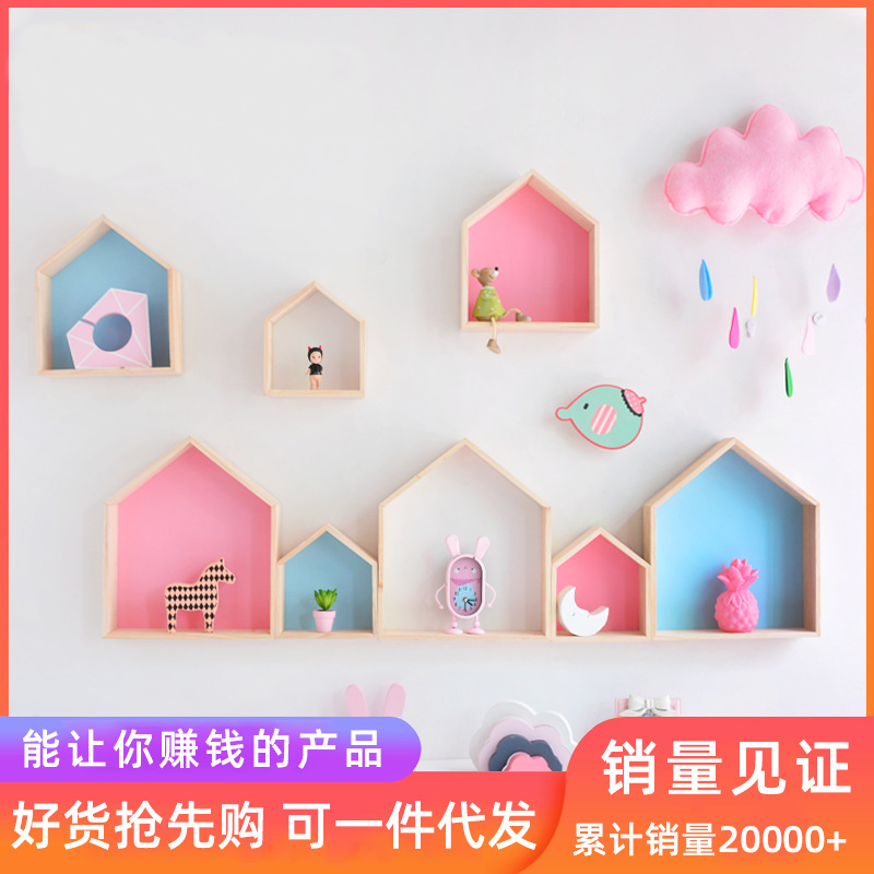 メーカー直販木製工芸品ins北欧実木小家五角形物置棚児童室装飾