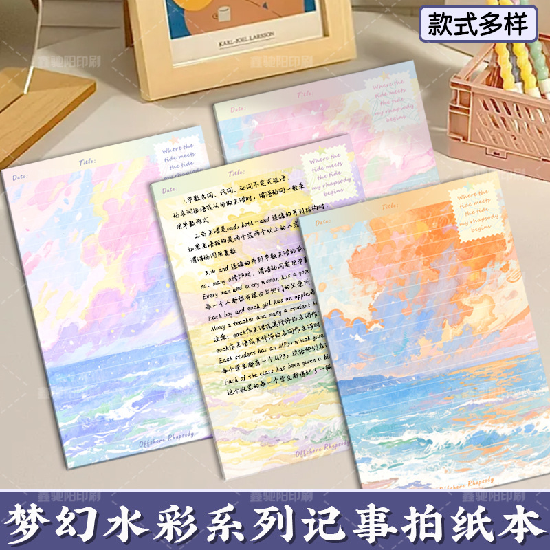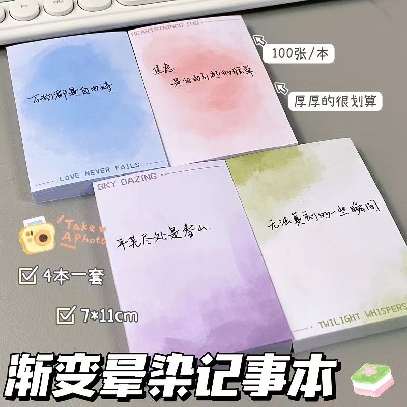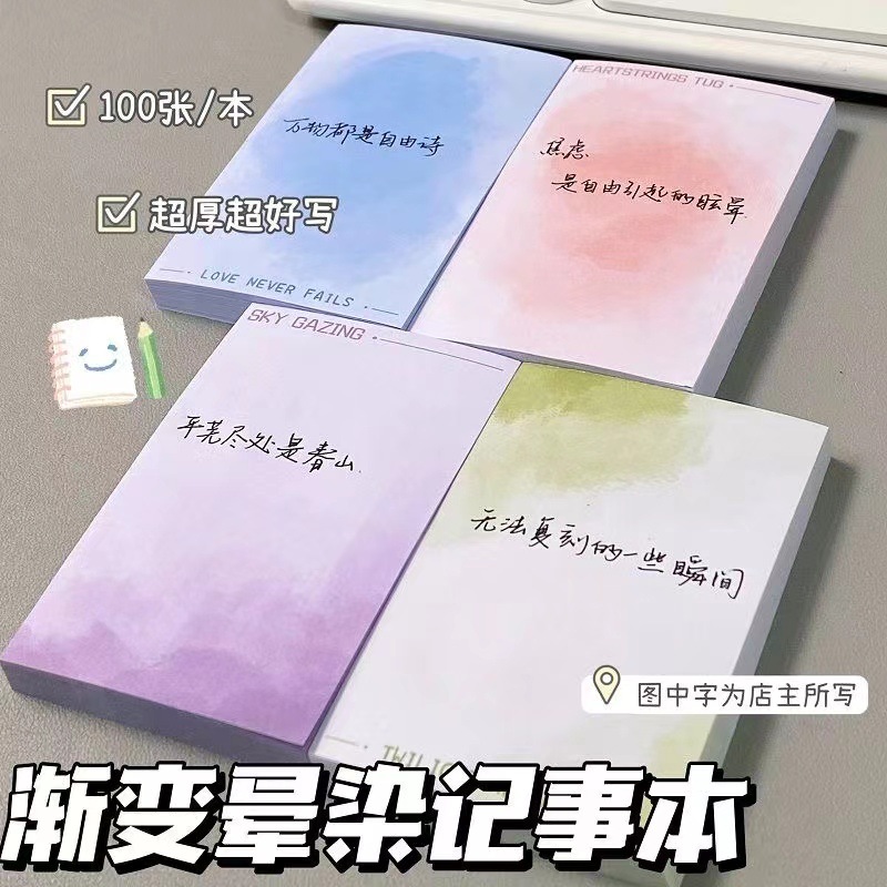 新品渐变系列拍纸本高颜值手写水彩记事本无粘性油画风草稿留言纸