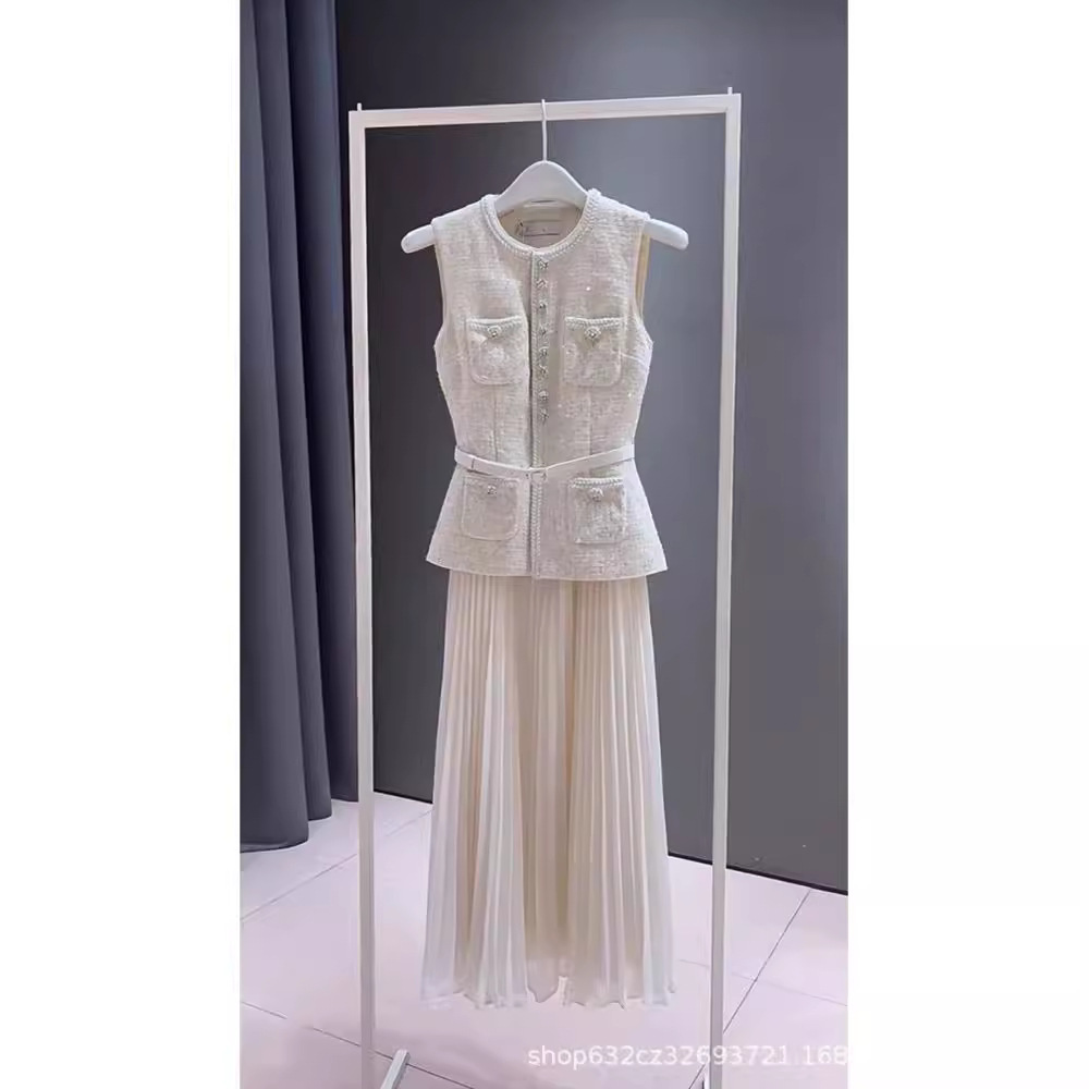 高級感のあるライトラグジュアリーな小香風ワンピース レディース 初秋2025新作 上品でエレガントなカジュアルスリムワンピース