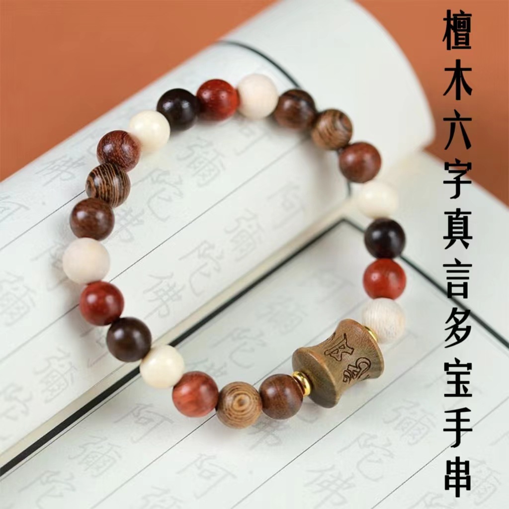 小紅書同項檀木多宝手串新中国式多宝六字真言ブレスレット生放送福祉品男女金