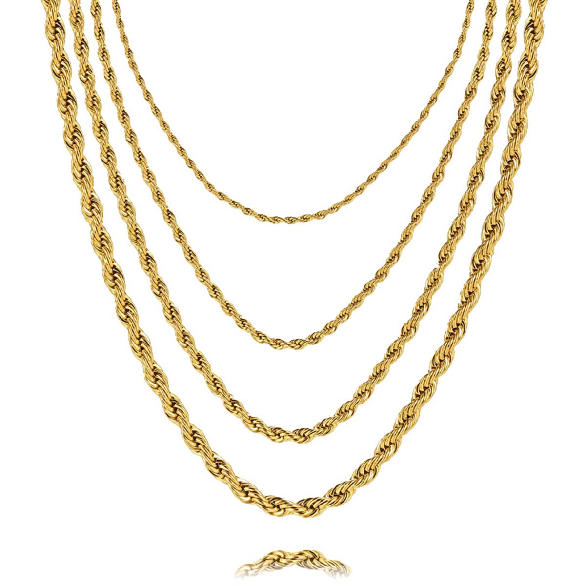 国境を越えた欧米の真空メッキ真金麻花ステンレスネックレスキューバチタン鋼ヒップホップチェーン男性卸売りチェーン