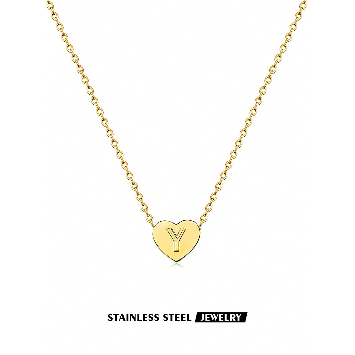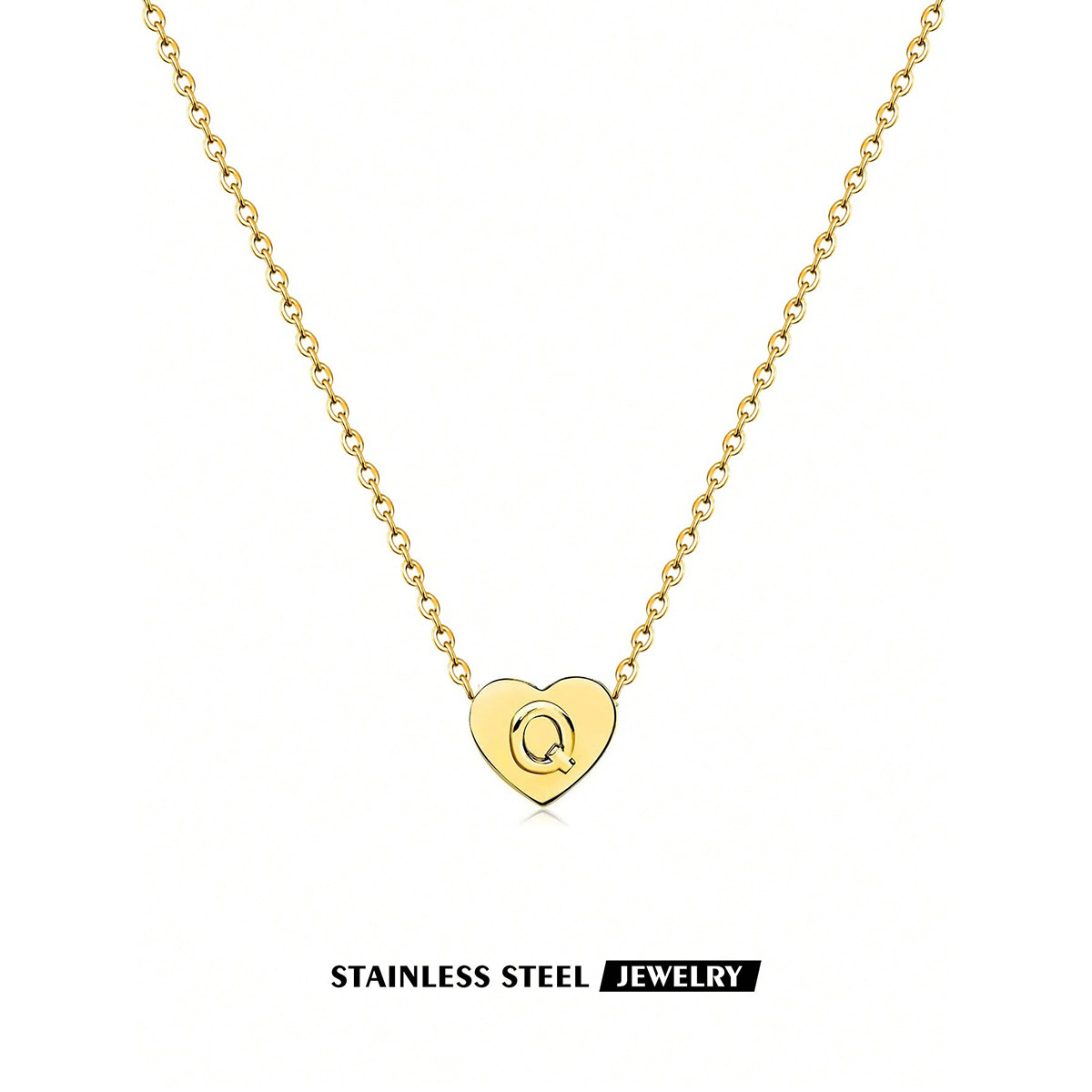 St.delan Amazon シンプルステンレススチール製ハートレターネックレス 欧米風レディースハート型ペンダント鎖骨チェーン